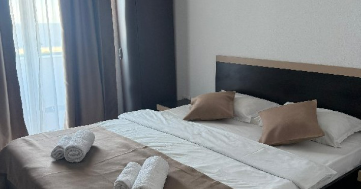 Apartamentul Premium: 2 dormitoare cu pat matrimonial, doua bai si living cu canapea extensibila (de 2 locuri). Camera de aproximativ 50 mp, aer conditionat, TV, frigider, wifi, baie proprie, terasa cu vedere la mare, cu scaune si masa.