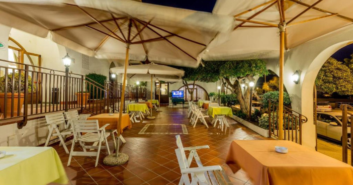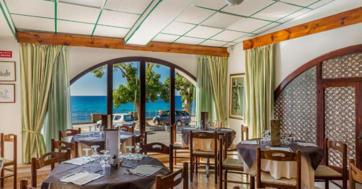 Restaurantul din incintă servește preparate delicioase din Sardinia și specialităti mediteraneene.