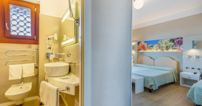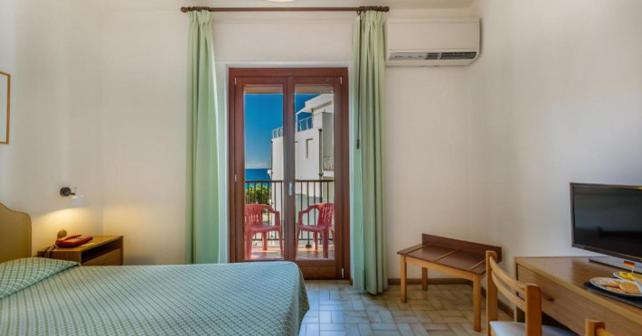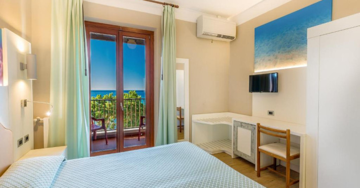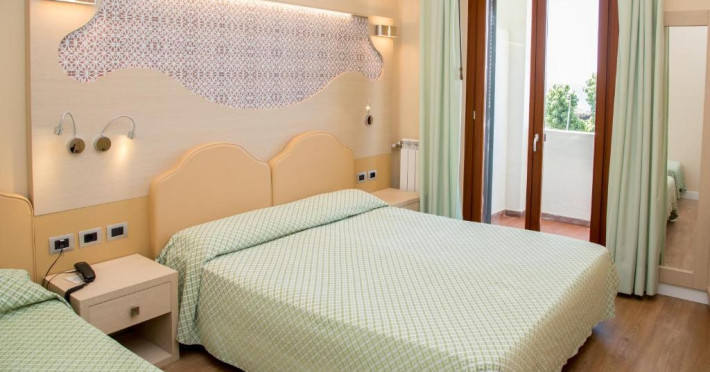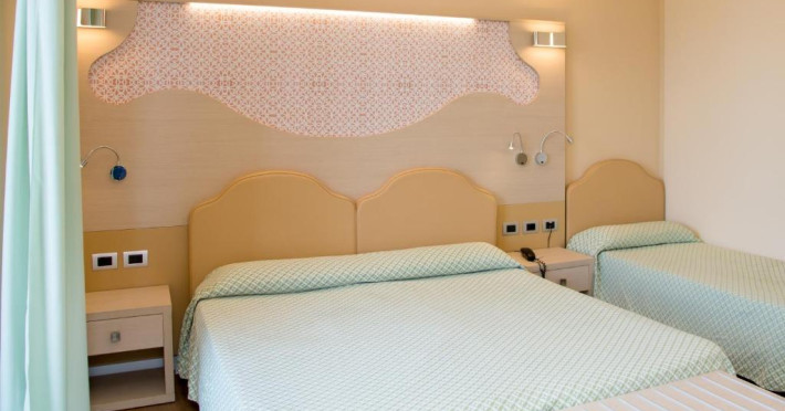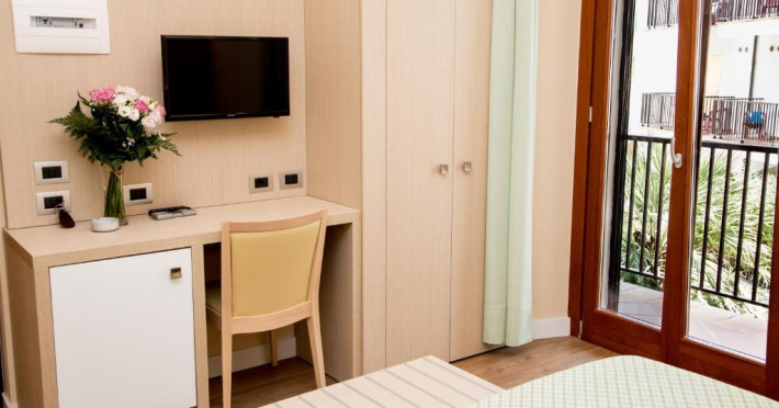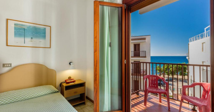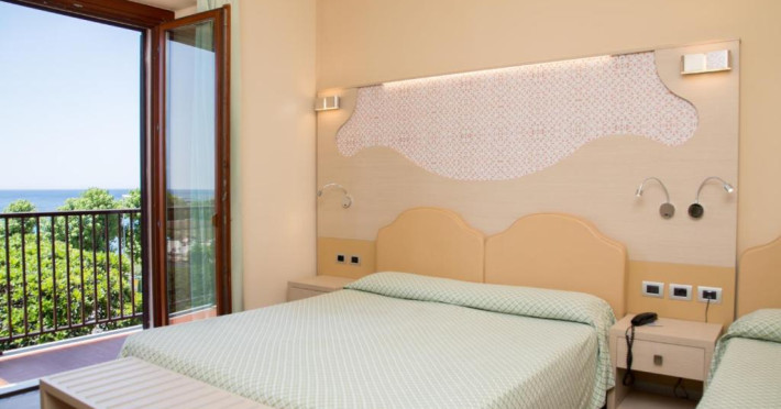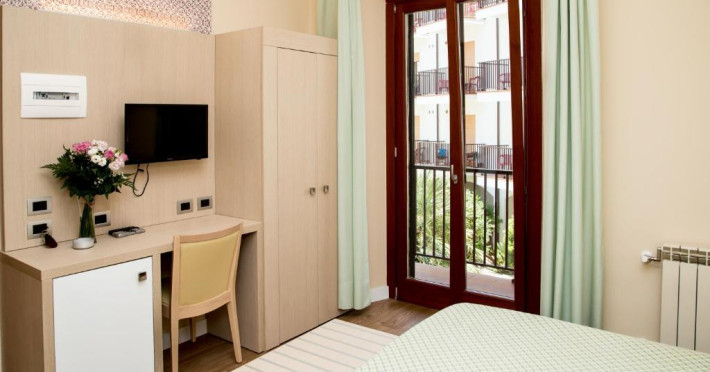 Camere Hotelului El Balear, luminoase, confortabile și spațioase, sunt prevăzute cu facilități moderne și balcon cu vedere la mare.