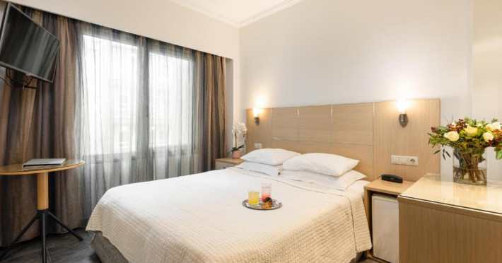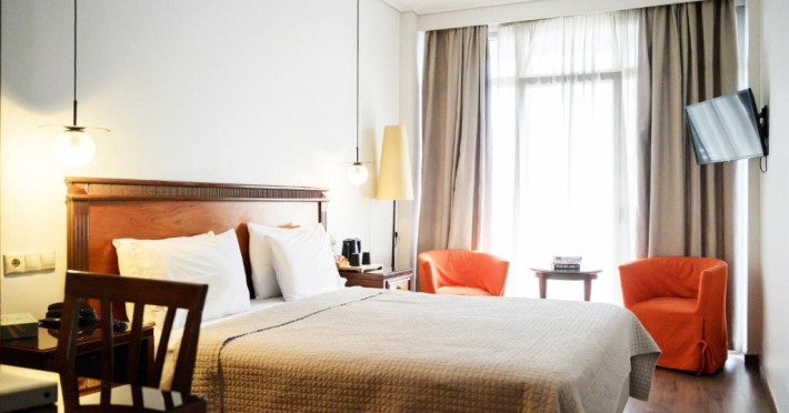Avand deschidere către un balcon cu vedere la oraș, toate camerele Hotelului Greco sunt bune cu aerul, TV cu ecran plat și canale prin satelit și mini-frigider. De asemenea, acestea au baie cu o cadă și ușcător de păr.