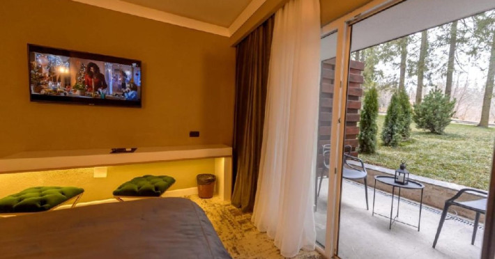 Facilitati generale: receptie deschisa nonstop, restaurant, bar, terasa, gradina, semineu in aer liber, centru spa, sauna, salina, piscina exterioara incalzita deschisa pe tot parcursul anului, sala de conferinte, cada cu hidromasaj/jacuzzi.