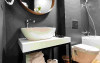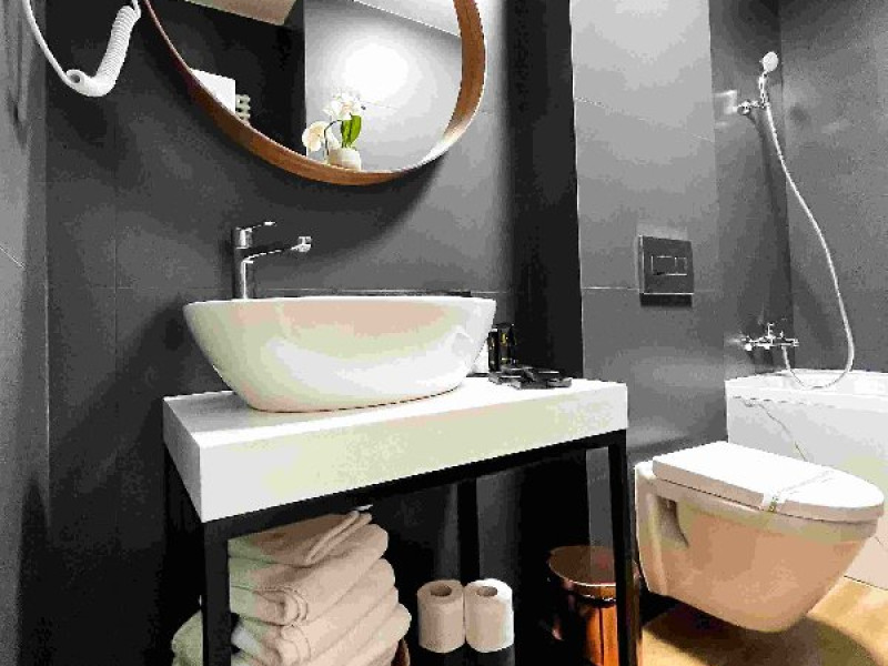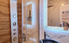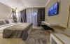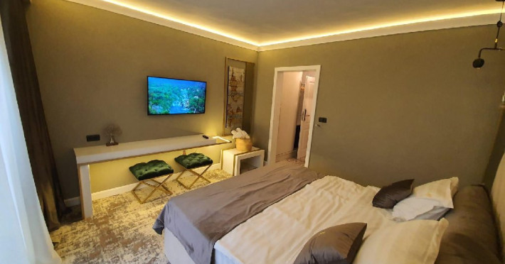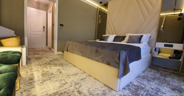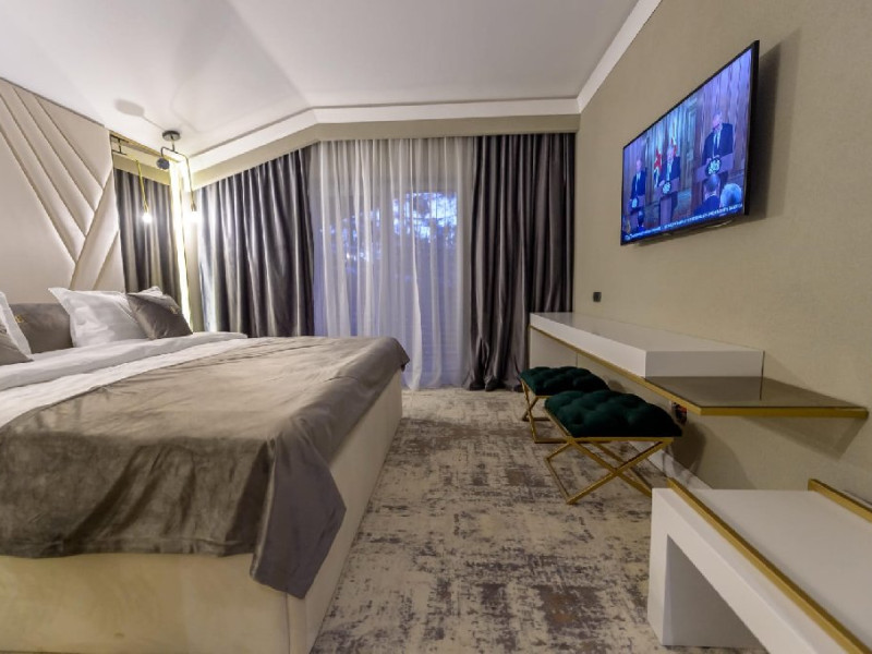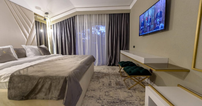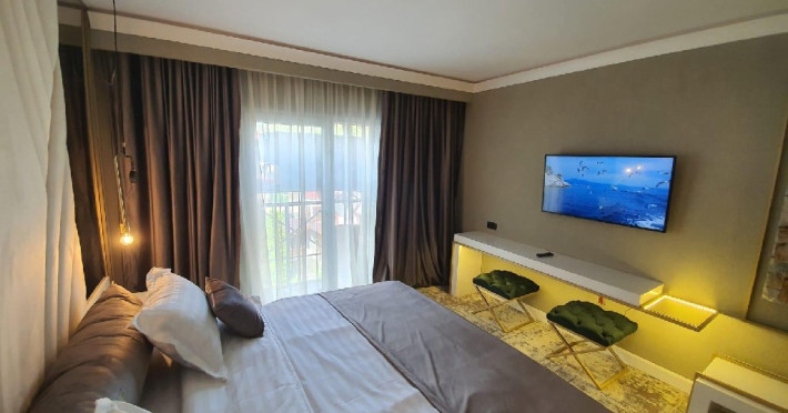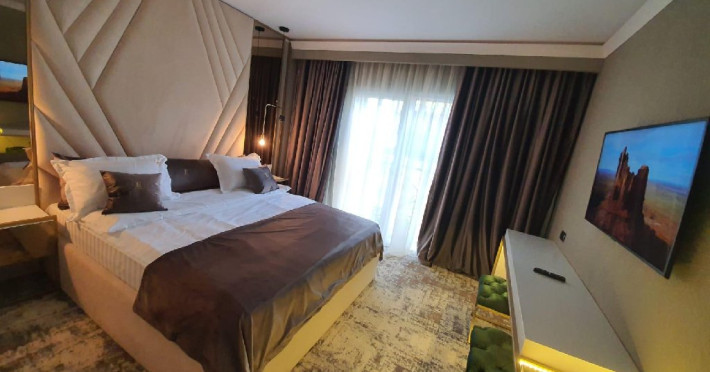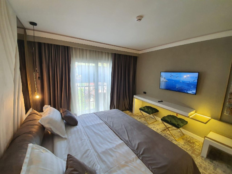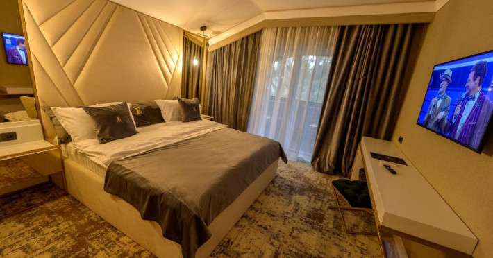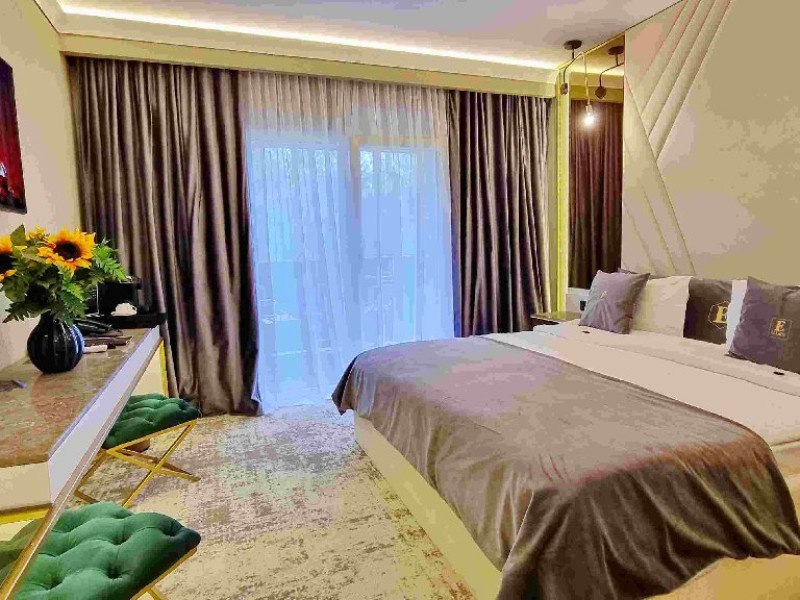 Apartament Deluxe: aer conditionat, acces card, TV lcd, uscator de par, telefon, seif, halat, papuci, fierbator de apa, consumabile, dormitor cu pat matrimonial + living cu canapea extensibila, balcon.
