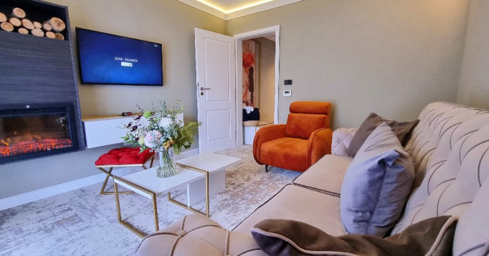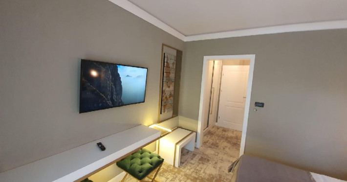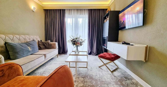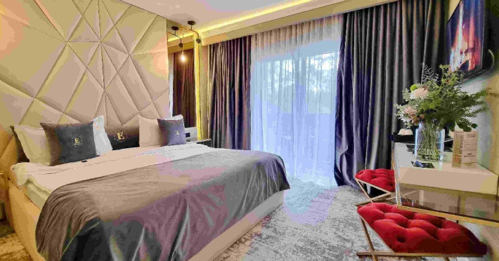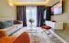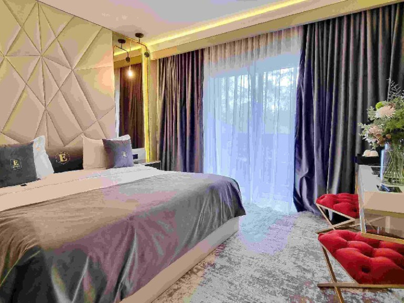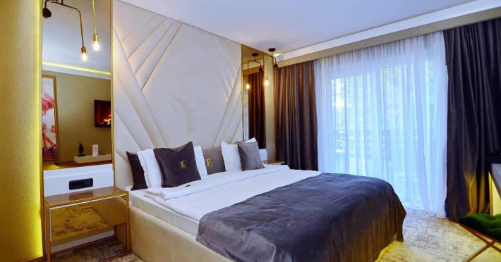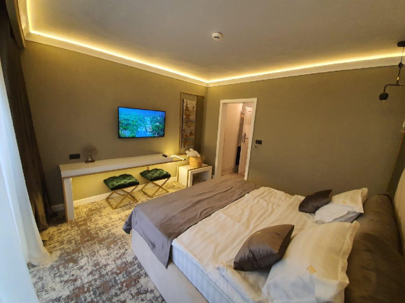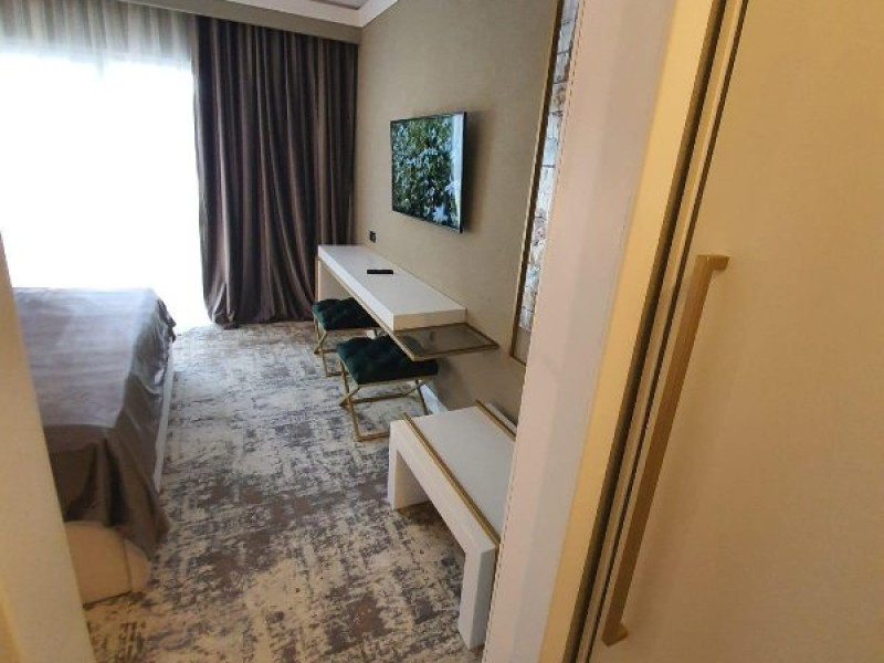 Apartament: aer conditionat, acces card, TV lcd, uscator de par, telefon, seif, halat, papuci, fierbator de apa, consumabile, dormitor cu pat matrimonial + living cu canapea extensibila.