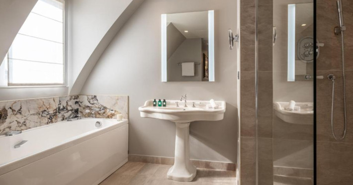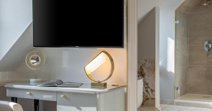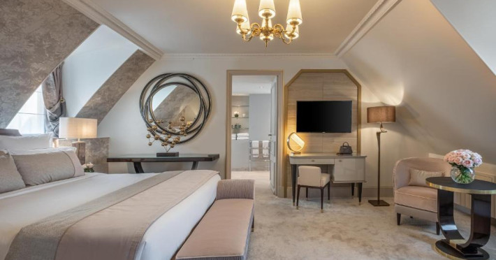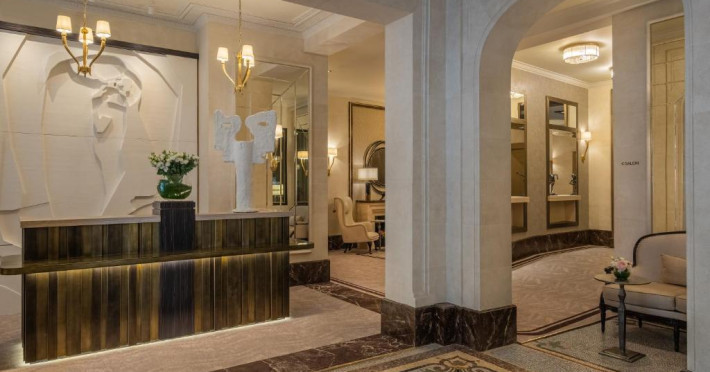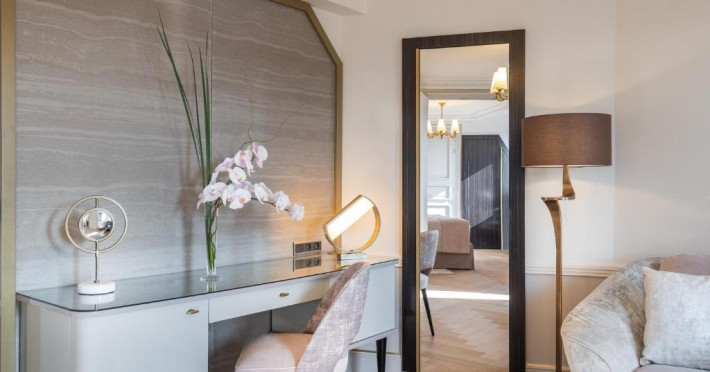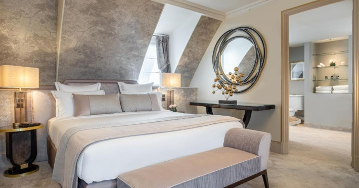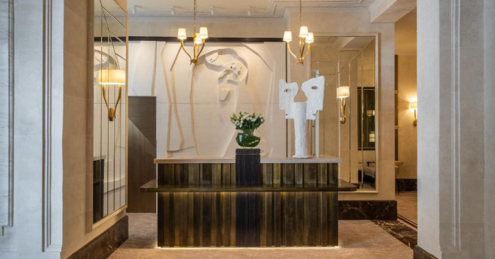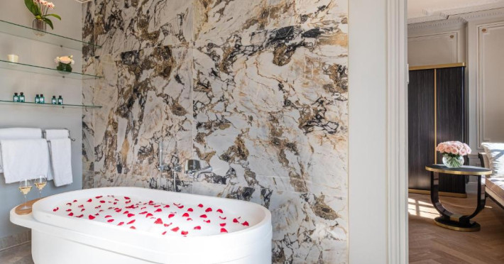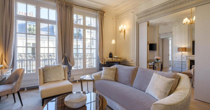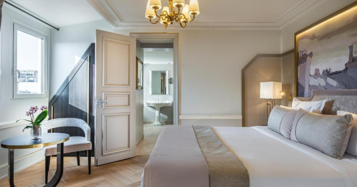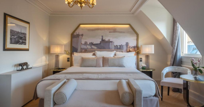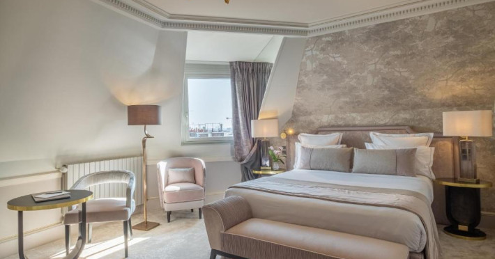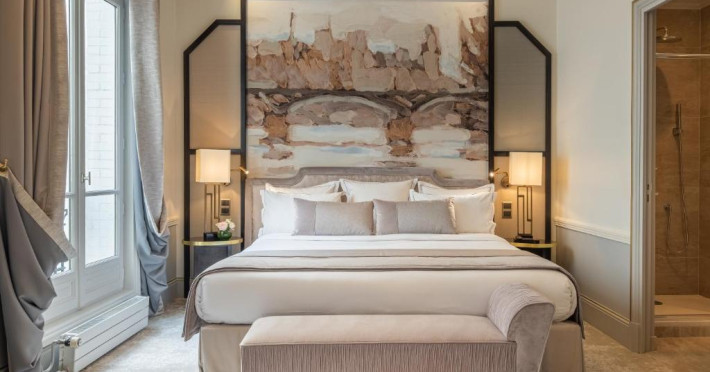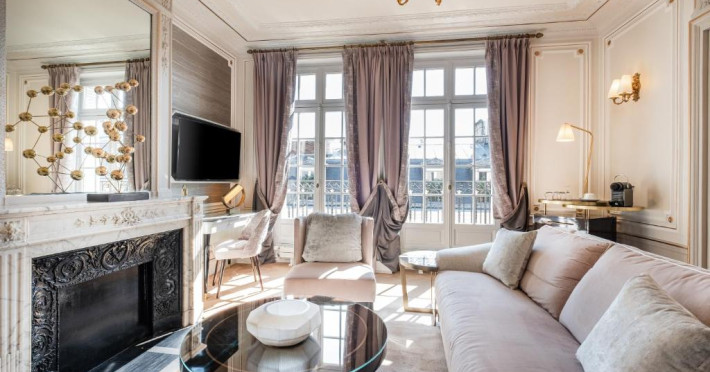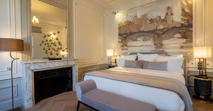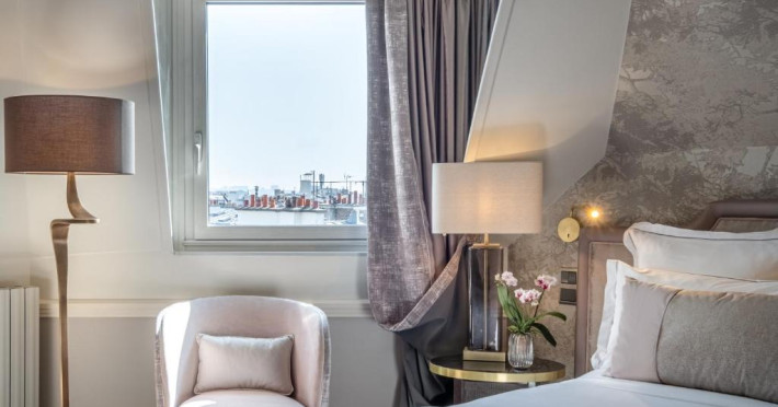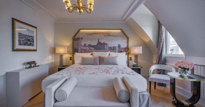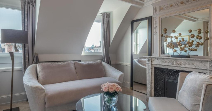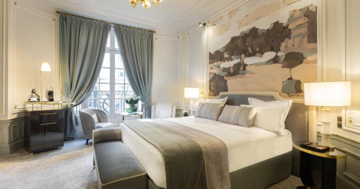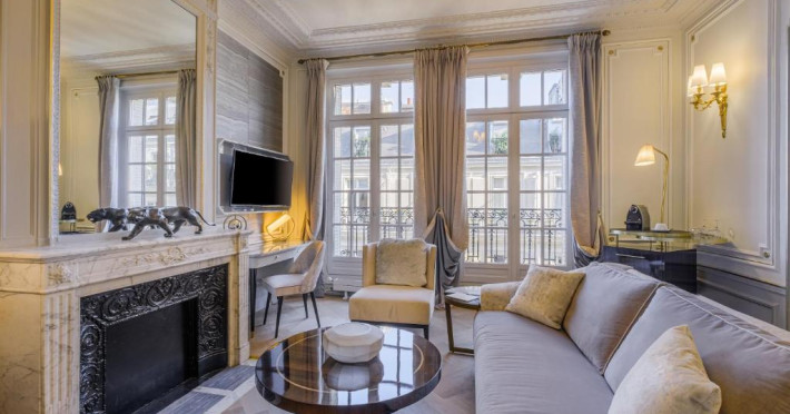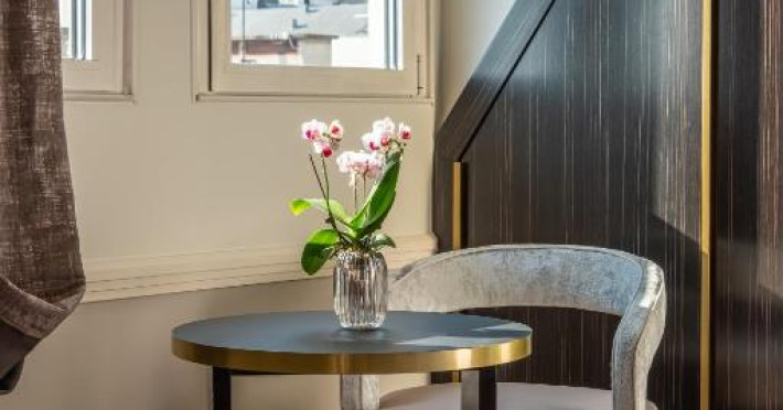 The luxurious Hôtel Elysia is an exclusive Haussmannian-style mansion located in the Champs-Élysées district. Most of the rooms feature a spa bath and a marble fireplace