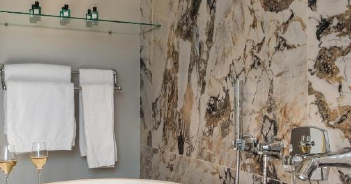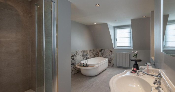 The spacious guest rooms feature high ceilings and stylish furnishings. Each soundproofed room is equipped with a flat-screen TV, a a Malongo coffee machine. The private bathrooms have an art-deco design.