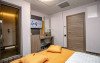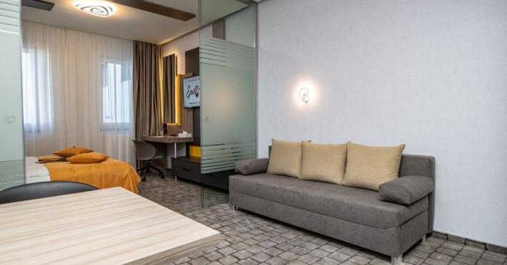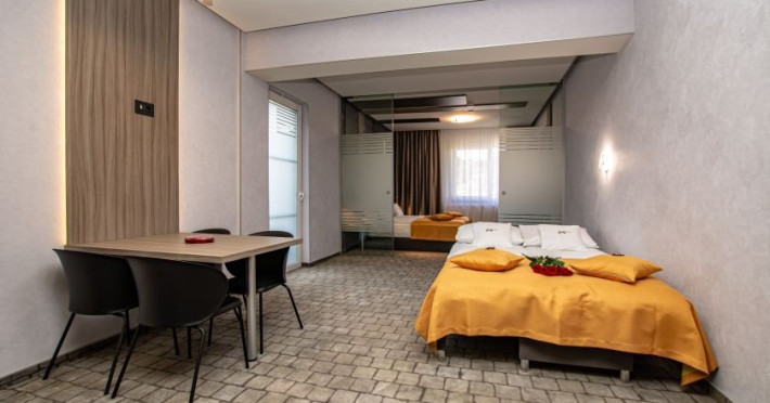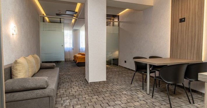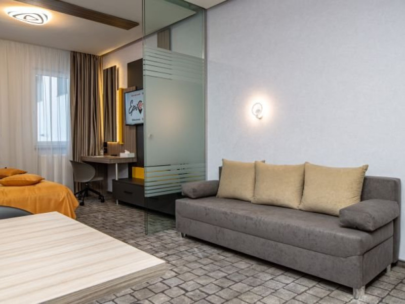Camerele sunt dotate cu aer conditionat, birou, TV cu ecran plat, lenjerie de pat, prosoape, baie privata, dulap si aparat de cafea.