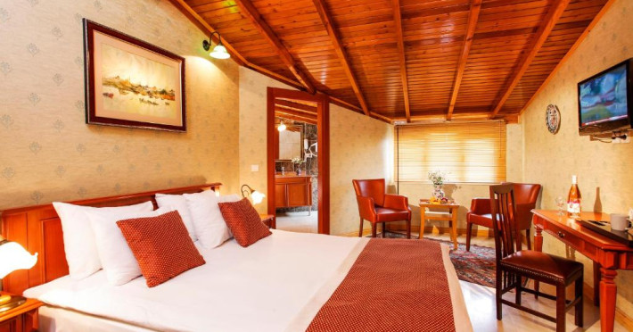Camerele hotelului Erguvan sunt decorate cu gust, cu mobilier lucrat manual in tonuri pămantii relaxante și imprimeuri atractive pe pereți. Fiecare cameră include TV LCD cu canale europene.
