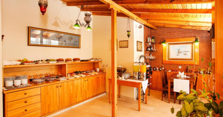 Ziua incepe cu un bufet suedez bogat de mic dejun, care include ouă proaspete, omlete și gemuri, prăjituri și produse de patiserie de casă. După micul dejun vă puteți bucura de o ceașcă de cafea tradițională turcească. Restaurantul cu terasă servește preparate alese din bucătăria turcească, inclusiv diferite meze. Barul oferă băuturi alcoolice și fără alcool.