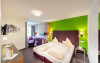 Camerele spațioase ale Hotelului Erhart conțin un balcon comun, dormitor cu zonă de relaxare, baie cu duș sau cadă/toaletă, TV digital cu plată, acces wifi, telefon, TV Radio, seif, minibar, uscător de păr, oglindă cosmetică. , inchiriere halate de baie si papuci de baie.