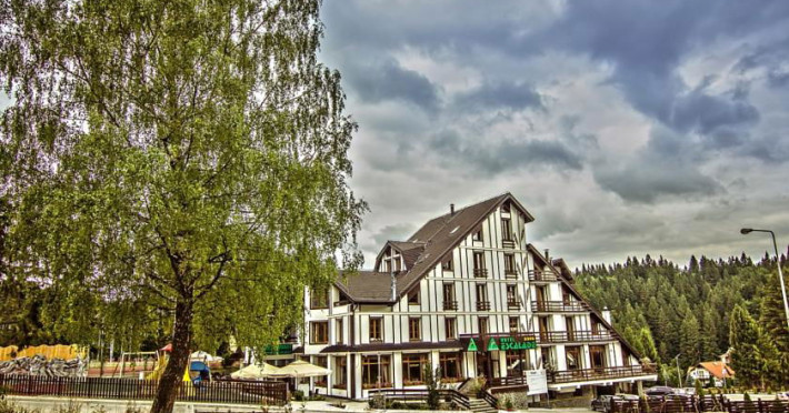 Hotelul Escalade este situat la o distanÅ£Ä de numai 100 m de telecabinÄ, telegondolÄ, partia de ski Åi snowboard, patinoar Åi pârtia de sÄniuÅ£e din Poiana BraÅov. Hotelul Escalade dispune de 10 camere duble cu pat matrimonial si 31 duble twin si cazare in spatii standard de 3 stele, in 5 camere duble cu pat matrimonial, 8 camere duble cu pat twin si 8 apartamente. Toate camerele au bÄi proprii, minibar, televiziune prin cablu, telefon cu acces internaÅ£ional, uscÄtor de pÄr, balcon sau terasÄ, canapea extensibilÄ Ã®n living în apartamente, sistem de avertizare a incendiilor. Hotelul vÄ oferÄ Åi alte facilitÄÅ£i precum loc de joacÄ pentru copii, atât în exteriorul hotelului cât Åi în interiorul acestuia, depozitare echipament ski, parcare, pista de bowling, masa de biliard si darts. Barul de zi are o capacitate de 80 locuri Åi este locul ideal unde puteÅ£i savura cocktail-uri Åi bÄuturi rafinate, însoÅ£ite de momente de relaxare. Hotel Escalade**** pune la dispoziÅ£ia oaspeÅ£ilor sÄi un Centru Wellness modern, pentru relaxare Åi destindere, în care puteÅ£i beneficia de urmÄtoarele: piscinÄ interioarÄ, jacuzzi, saunÄ (uscatÄ Åi umedÄ), salon de masaj Åi centru fitness. Internetul Wi-Fi este gratuit.Datorita dinamicitatii domeniului disponibilitatea ofertelor se modifica de la un moment la altul. De aceea ofertele sunt valabile in limita locurilor disponibile. Agentia nu este responsabila pentru eventualele neconcordante care pot aparea intre informatiile privind tarifele si alte detalii din site si informatiile primite in agentie. In aceste cazuri vor avea prioritate, intotdeauna, informatiile primite in agentie.