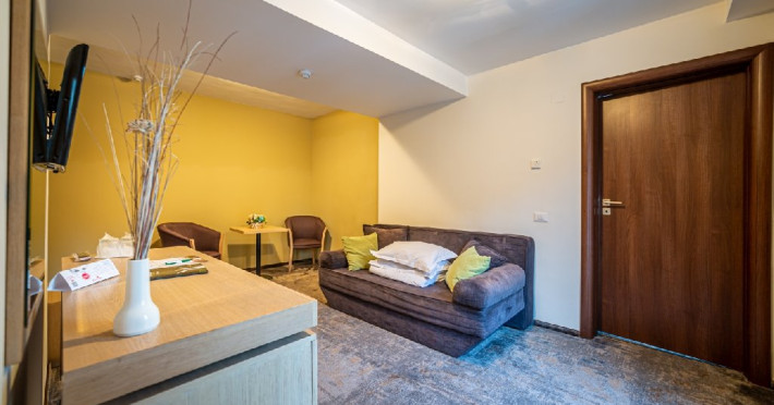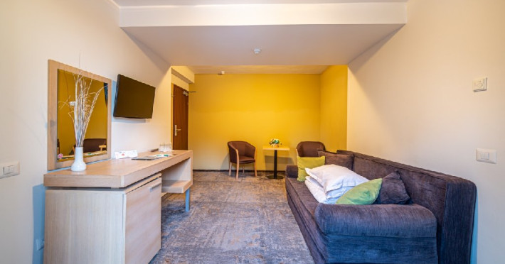 Toate camerele au bai proprii, minibar, internet gratuit, televiziune prin cablu, telefon cu acces internaLLional, uscator de par, canapea extensibila in living, sistem de avertizare a incendiilor
