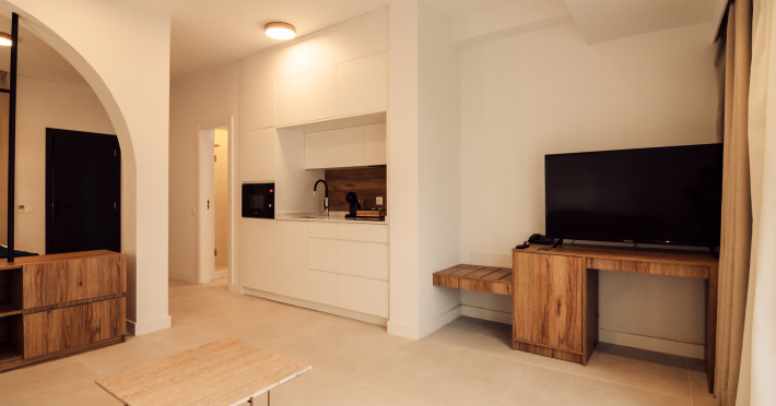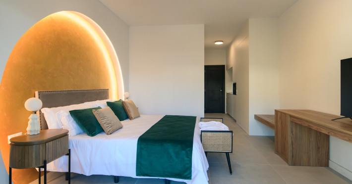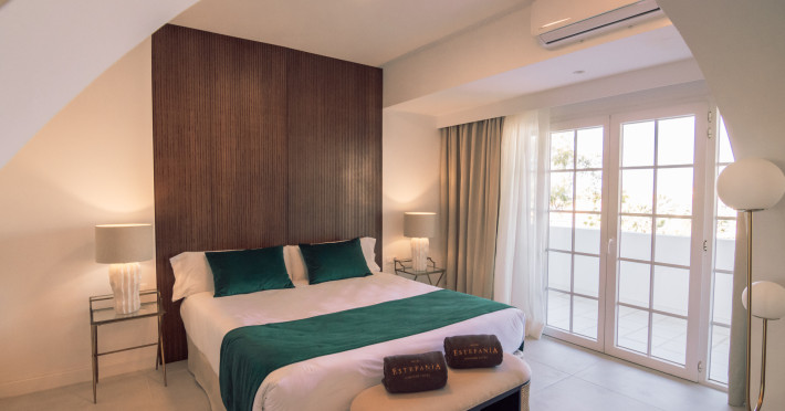 The air-conditioned, GPS-verified aparthotel Hotel Estefania Boutique Suites (Adults Only) is equipped with a 24h reception (check-in is possible around the clock), a lobby bar, Wi-Fi, internet access, a lift, cash machine, a first aid kit, parking spaces as well as a TV lounge with satellite TV. In the outdoor area of the property you will find a garden as well as a heated pool (open all year), where sun loungers, sun umbrellas and pool towels are available for free. For children there is also a children's pool with a non-swimming area. Furthermore, you can relax outdoors on the sun terrace. You can store your valuables in the safe, and your luggage in the hotel`s storage room. In addition, the hotel Hotel Estefania Boutique Suites (Adults Only) is video-monitored 24h a day. There is also a laundry and ironing service. Ironing equipment can also be borrowed at the hotel. For your comfort there is a concierge service. If necessary, you can contact the medical centre at any time. The energy supply is 220 Volts. If you want to explore the holiday region, you can use the motorbike rental service close to the hotel. At the hotel reception, tickets are offered for excursions in the area. For guests on their honeymoon, the hotel has special offers such as special honeymoon packages or a present in the room. In your hotel, a lot of focus is placed on sustainability. This includes the provision of soap, shampoo and lotion dispensers, organic food and ecological meals, a central room air-conditioning and environmentally-friendly cleaning. The hotel requires that all guests pay a deposit upon arrival. Euro/Master Card and Visa are accepted as means of payment. Catering As catering services the hotel offers self-catering. Breakfast is offered continental or à la carte (extras on request). Enjoy your lunch as a set meal or à la carte with starters, salads and desserts (extras on request). Dinner is also served à la carte with starters, salads and desserts (extras on request). For the meals, there are a restaurant with terrace (Mediterranean, calorie-reduced, gluten-free and vegetarian dishes) and the pool bar. The drinks menu of the hotel includes water, soft drinks, coffee and tea, beer and wine. You can take part in the cooking classes offered by the hotel during your stay. Sports & Leisure The publicly accessible 9- and 18-hole golf course offers a covered driving range. The necessary equipment you can rent from a golf rental facility. In the surrounding you can also take advantage of a range of water sports, including speedboat riding and jet skiing. During your holiday you can also take part in aerobics and yoga courses. For cyclists there is a bicycle rental, a bicycle workshop as well as a storage room. Cycling maps can also be purchased in the hotel. Cycling tours are also organized by the hotel. In the surroundings of the hotel there are also some beautiful hiking routes, on which you can be accompanied by professional guides if you wish. Furthermore, various water sports such as fishing, windsurfing, snorkelling and nitrox diving (including rental and shuttle services) are offered in the area. Windsurfers can rent the necessary equipment near the hotel. Beginners as well as advanced divers and surfers can train their skills under and on the water with an instructor at a diving and windsurfing school. Kiting is also possible in the surroundings of the hotel. The wellness area offers massages and physiotherapies. Spend some healthy and relaxing hours with chiropractice, hot stone therapy, hydrotherapy as well as brine baths. In addition, nutritional advice is offered. In terms of adult entertainment, live music is presented on certain days. Some of the sports are already included in the price. Additional information The accommodation is exclusive to adult guests. This hotel is gay-friendly. The hotel staff speak English, German, French, Italian and Spanish.The air-conditioned, GPS-verified aparthotel Hotel Estefania Boutique Suites (Adults Only) is equipped with a 24h reception (check-in is possible around the clock), a lobby bar, Wi-Fi, internet access, a lift, cash machine, a first aid kit, parking spaces as well as a TV lounge with satellite TV. In the outdoor area of the property you will find a garden as well as a heated pool (open all year), where sun loungers, sun umbrellas and pool towels are available for free. For children there is also a children's pool with a non-swimming area. Furthermore, you can relax outdoors on the sun terrace. You can store your valuables in the safe, and your luggage in the hotel`s storage room. In addition, the hotel Hotel Estefania Boutique Suites (Adults Only) is video-monitored 24h a day. There is also a laundry and ironing service. Ironing equipment can also be borrowed at the hotel. For your comfort there is a concierge service. If necessary, you can contact the medical centre at any time. The energy supply is 220 Volts. If you want to explore the holiday region, you can use the motorbike rental service close to the hotel. At the hotel reception, tickets are offered for excursions in the area. For guests on their honeymoon, the hotel has special offers such as special honeymoon packages or a present in the room. In your hotel, a lot of focus is placed on sustainability. This includes the provision of soap, shampoo and lotion dispensers, organic food and ecological meals, a central room air-conditioning and environmentally-friendly cleaning. The hotel requires that all guests pay a deposit upon arrival. Euro/Master Card and Visa are accepted as means of payment. Catering As catering services the hotel offers self-catering. Breakfast is offered continental or à la carte (extras on request). Enjoy your lunch as a set meal or à la carte with starters, salads and desserts (extras on request). Dinner is also served à la carte with starters, salads and desserts (extras on request). For the meals, there are a restaurant with terrace (Mediterranean, cal