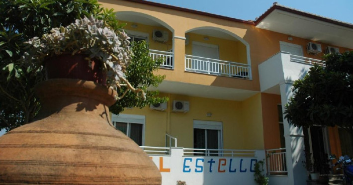 Locatie: Hotelul Estelle este o afacere de familie si este localizat in statiunea Gerakini, la inceputul bratului Sithonia. Hotelul este bine pozitionat, la doar 40 m distanta de plaja, la 100 m de baruri, restaurante si statie bus.Facilitati camere: Cele 15 camere sunt dotate cu aer conditionat, TV, WiFi, frigider, uscator de par, baie cu dus si balcon.
