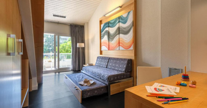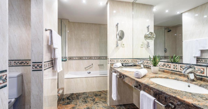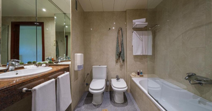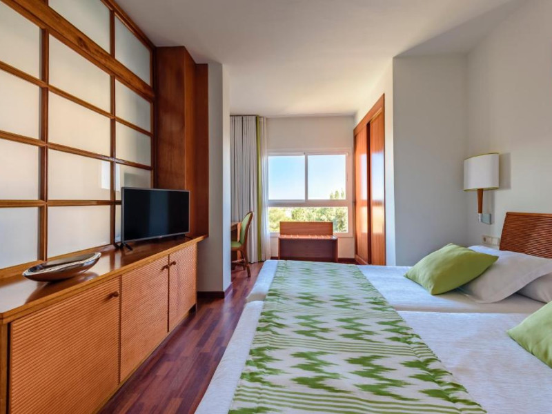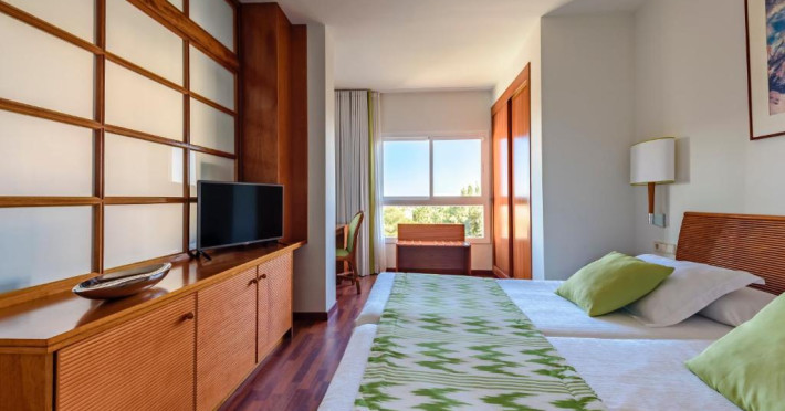 Camerele cu aer condiționat de la Hotelul Estival Park Silmar au balcon privat și TV prin satelit. Băile private sunt dotate cu uscător de păr.