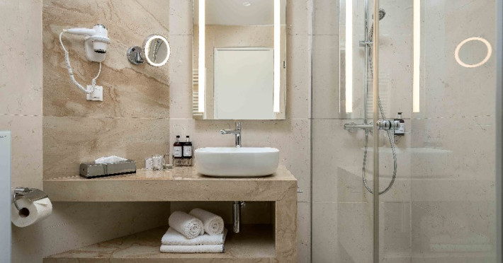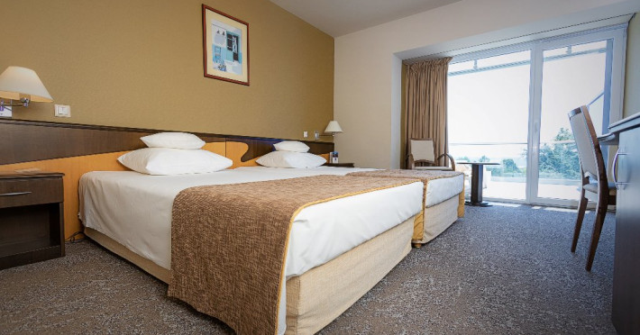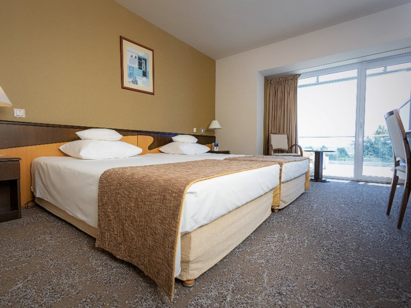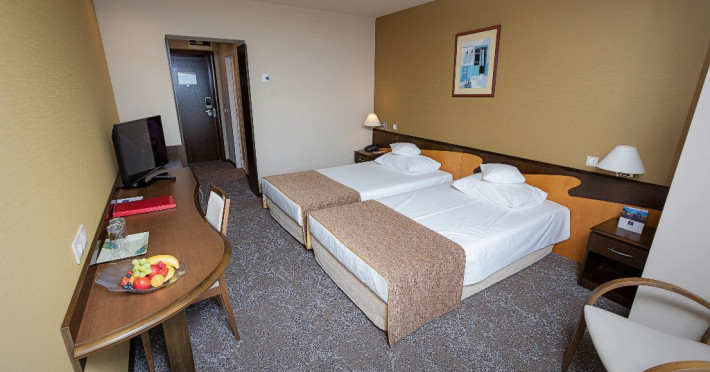 Camere Twin Infinity au aceeasi dimenisiune ca si o camera dubla standard - 25 mp ( cu baie), sunt camerele de la etajul 1, renovate in anul 2018, sunt camere doar cu dus, terasa cu 2 sezlonguri.