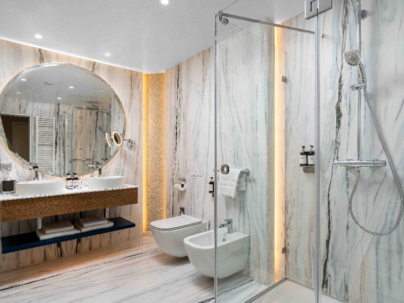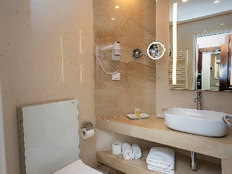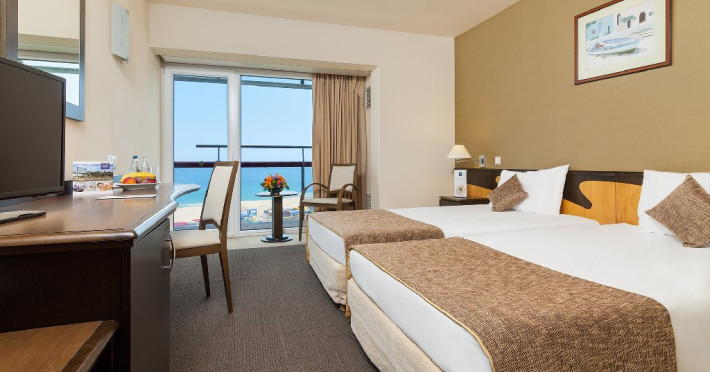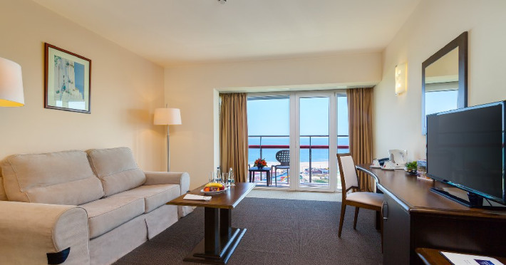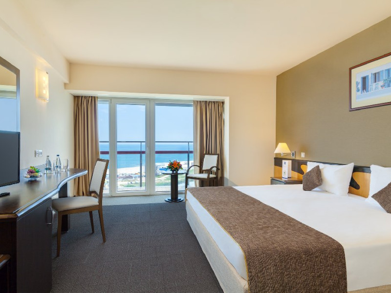 Dotari camere: aer conditionat, TV, minibar, seif, baie cu cada -sau dus, balcon, internet, uscator de par, telefon, priza pentru aparat de ras in baie, vedere la mare, papuci si halate.