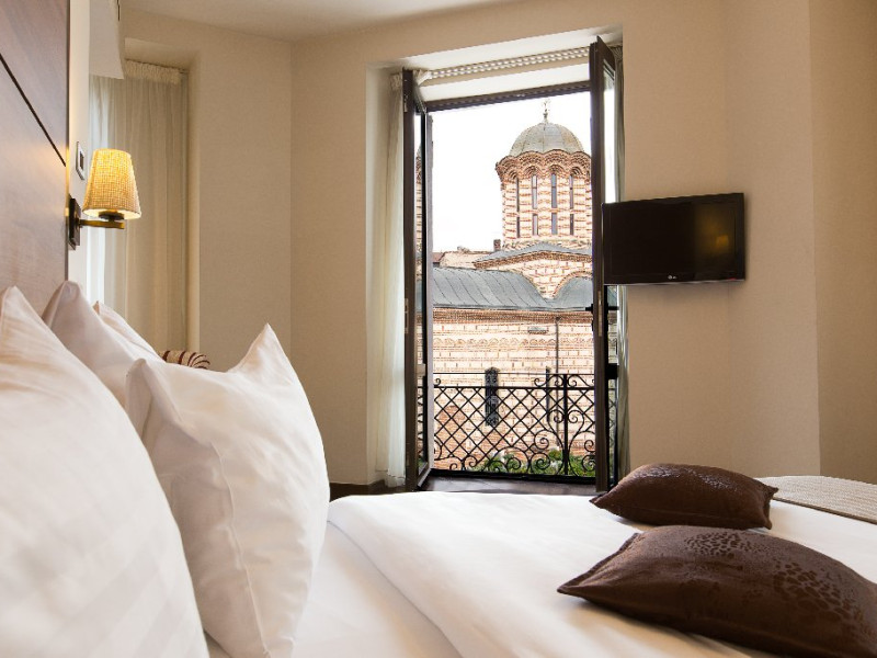 Lasa-te fascinat de panorama spectaculoasa asupra Bulevardului Unirii si de accesul rapid la zona istorica, prin intrarea aflata vizavi de celebra cladire momument, Hanul lui Manuc. La doar un pas de hotel stau ruinele Palatului Voievodal Curtea Veche si Biserica Curtea Veche - ambele cu povesti de peste cinci secole vechime.