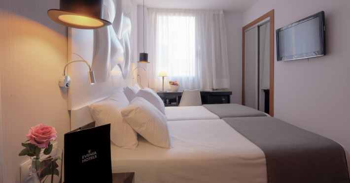 The air-conditioned hotel HOTEL EVENIA ROCAFORT has a 24h reception (check-in is possible around the clock), a lobby, Wi-Fi, a lift, a first aid kit, parking spaces (for a fee) as well as a TV lounge with satellite TV. You can store your valuables in the safe, and your luggage in the hotel`s storage room. For very young guests, kid`s chairs can be provided). To clean your clothes there is a laundry service. For your comfort there is a concierge service. If necessary, you can contact the medical centre at any time. Guests at the accommodation can get a wake-up call from the hotel personnel. For conventions and other business meetings, the hotel offers a business centre as well as a conference area with printer as well as overhead projector. At the hotel reception, tickets are offered for excursions in the area. In your hotel, a lot of focus is placed on sustainability. This includes among others the hotel`s own recycling bins. Due to its barrier-free facilities , such as barrier-free entrances, wheelchair accessible rooms and wheelchair-accessible bathrooms, the hotel is also suitable for wheelchair users. Catering As catering services the hotel offers breakfast only and self-catering. Breakfast is offered continental or from the buffet. Sports & Leisure For cyclists there is a bicycle rental.The air-conditioned hotel HOTEL EVENIA ROCAFORT has a 24h reception (check-in is possible around the clock), a lobby, Wi-Fi, a lift, a first aid kit, parking spaces (for a fee) as well as a TV lounge with satellite TV. You can store your valuables in the safe, and your luggage in the hotel`s storage room. For very young guests, kid`s chairs can be provided). To clean your clothes there is a laundry service. For your comfort there is a concierge service. If necessary, you can contact the medical centre at any time. Guests at the accommodation can get a wake-up call from the hotel personnel. For conventions and other business meetings, the hotel offers a business centre as well as a conference area with printer as well as overhead projector. At the hotel reception, tickets are offered for excursions in the area. In your hotel, a lot of focus is placed on sustainability. This includes among others the hotel`s own recycling bins. Due to its barrier-free facilities , such as barrier-free entrances, wheelchair accessible rooms and wheelchair-accessible bathrooms, the hotel is also suitable for wheelchair users. Catering As catering services the hotel offers breakfast only and self-catering. Breakfast is offered continental or from the buffet. Sports & Leisure For cyclists there is a bicycle rental.