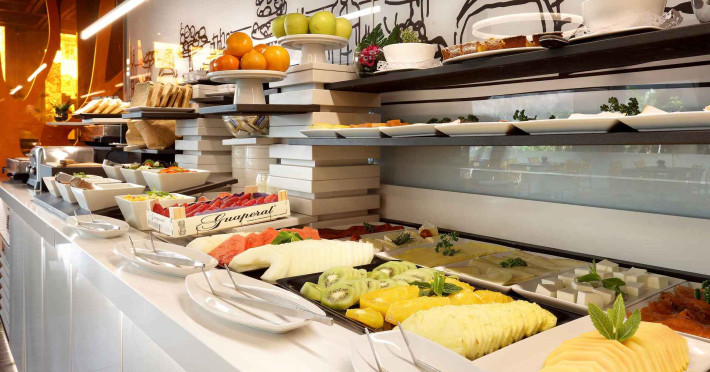 The hotel HOTEL EVENIA ROSSELLO lies approx. 5 km from the sea. The old town is around 1,5 km away. A supermarket and other shops you reach after approx. 100 m. There is a shuttle between the hotel and the airport (for a fee). In the surrounding a disco (approx. 200 m away), a leisure park (approx. 6 km), an aqua park (approx. 18 km), a theatre (approx. 2 km) and a cinema (approx. 1 km) offer entertainment during the best time of the year. The hotel has a 24h reception (check-in is possible around the clock), a lobby bar, Wi-Fi, a lift, a first aid kit, parking spaces (for a fee) as well as a TV lounge with satellite TV. Furthermore, you can relax outdoors on a terrace and in a garden. You can store your valuables in the safe, and your luggage in the hotel`s storage room. For very young guests, kid`s chairs, highchairs and cots can be provided. For the smallest children prams can be rented in the hotel. To clean your clothes there are a laundry service (extra fee) and an ironing service. For your comfort, in addition to the concierge service the hotel page will ensure you are looked after. If necessary, you can contact the medical centre at any time (for a fee). Guests at the accommodation can get a wake-up call from the hotel personnel. For conventions and other business meetings, the hotel offers a business centre as well as a conference area with printer as well as overhead projector. If you want to explore the holiday region, you can use the car and motorbike rental service close to the hotel (extra fee). At the reception, tickets are offered for excursions in the area. For guests on their honeymoon, the hotel has special offers such as special honeymoon packages. In your hotel, a lot of focus is placed on sustainability. This includes among others the hotel`s own recycling bins. Due to its barrier-free facilities , such as barrier-free entrances, wheelchair accessible rooms and wheelchair-accessible bathrooms, the hotel is also suitable for wheelchair users. Catering As catering services the hotel offers half board and full board. Breakfast is offered continental, from the buffet or à la carte (extras on request). Lunch and dinner are also served as a set meal or à la carte. For the meals, there are a buffet restaurant with terrace (Mediterranean, calorie-reduced, gluten-free and vegetarian dishes) and the cafeteria. A picnic bench can be used by guests for self-catering. Distances- Airport: approx. 12 km