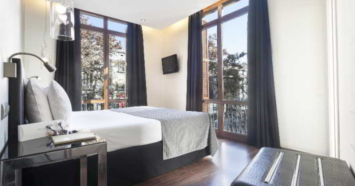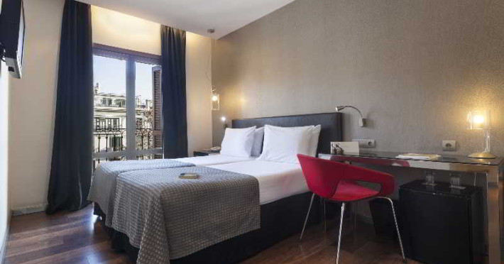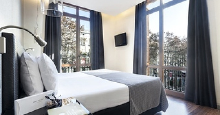 With a stay at Exe Ramblas Boqueria in Barcelona (Downtown Barcelona), you'll be steps from La Rambla and 9 minutes by foot from Plaça de Catalunya. This hotel is 0.3 mi (0.5 km) from Barcelona Cathedral and 1.7 mi (2.7 km) from Barceloneta Beach. Take in the views from a terrace and make use of amenities such as complimentary wireless Internet access and concierge services. Make yourself at home in one of the 30 guestrooms featuring minibars. Complimentary wireless Internet access is available to keep you connected. Private bathrooms have deep soaking bathtubs and complimentary toiletries. Conveniences include phones, as well as safes and desks. Take advantage of the hotel's room service. Continental breakfasts are served on weekdays from 7:30 AM to 10:30 AM and on weekends from 8 AM to 11 AM for a fee. Featured amenities include complimentary newspapers in the lobby, dry cleaning/laundry services, and a 24-hour front desk. Distances are displayed to the nearest 0.1 mile and kilometer.La Rambla - 0.1 km/0.1 mi- Boqueria Market - 0.2 km/0.1 mi- Gran Teatre del Liceu - 0.3 km/0.2 mi- Plaça Reial - 0.4 km/0.2 mi- Portal de l'Angel - 0.4 km/0.2 mi- Palau Güell - 0.5 km/0.3 mi- Barcelona Cathedral - 0.5 km/0.3 mi- Barcelona Museum of Contemporary Art - 0.6 km/0.4 mi- El Corte Ingles - 0.6 km/0.4 mi- Rambla del Raval - 0.6 km/0.4 mi- Plaça de Catalunya - 0.7 km/0.4 mi- Barcelona Wax Museum - 0.8 km/0.5 mi- Maritime Museum - 0.8 km/0.5 mi- Pompeu Fabra University - 0.8 km/0.5 mi- Palau de la Música Catalana - 0.8 km/0.5 mi. The preferred airport for Exe Ramblas Boqueria is Barcelona El Prat Airport (BCN) - 15.1 km/9.4 mi.With a stay at Exe Ramblas Boqueria in Barcelona (Downtown Barcelona), you'll be steps from La Rambla and 9 minutes by foot from Plaça de Catalunya. This hotel is 0.3 mi (0.5 km) from Barcelona Cathedral and 1.7 mi (2.7 km) from Barceloneta Beach. Take in the views from a terrace and make use of amenities such as complimentary wireless Internet access and concierge services. Make yourself at home in one of the 30 guestrooms featuring minibars. Complimentary wireless Internet access is available to keep you connected. Private bathrooms have deep soaking bathtubs and complimentary toiletries. Conveniences include phones, as well as safes and desks. Take advantage of the hotel's room service. Continental breakfasts are served on weekdays from 7:30 AM to 10:30 AM and on weekends from 8 AM to 11 AM for a fee. Featured amenities include complimentary newspapers in the lobby, dry cleaning/laundry services, and a 24-hour front desk. Distances are displayed to the nearest 0.1 mile and kilometer.La Rambla - 0.1 km/0.1 mi- Boqueria Market - 0.2 km/0.1 mi- Gran Teatre del Liceu - 0.3 km/0.2 mi- Plaça Reial - 0.4 km/0.2 mi- Portal de l'Angel - 0.4 km/0.2 mi- Palau Güell - 0.5 km/0.3 mi- Barcelona Cathedral - 0.5 km/0.3 mi- Barcelona Museum of Contemporary Art - 0.6 km/0.4 mi- El Corte Ingles - 0.6 km/0.4 mi- Rambla del Raval - 0.6 km/0.4 mi- Plaça de Catalunya - 0.7 km/0.4 mi- Barcelona Wax Museum - 0.8 km/0.5 mi- Maritime Museum - 0.8 km/0.5 mi- Pompeu Fabra University - 0.8 km/0.5 mi- Palau de la Música Catalana - 0.8 km/0.5 mi. The preferred airport for Exe Ramblas Boqueria is Barcelona El Prat Airport (BCN) - 15.1 km/9.4 mi.