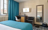 Poziționarea centrală vă permite să explorați cu ușurință atracțiile orașului, inclusiv casa natală a lui Napoleon Bonaparte și portul vechi. Restaurantul hotelului servește specialități corsicane autentice, iar terasa este locul perfect pentru un aperitiv in atmosfera vibrantă a orașului.