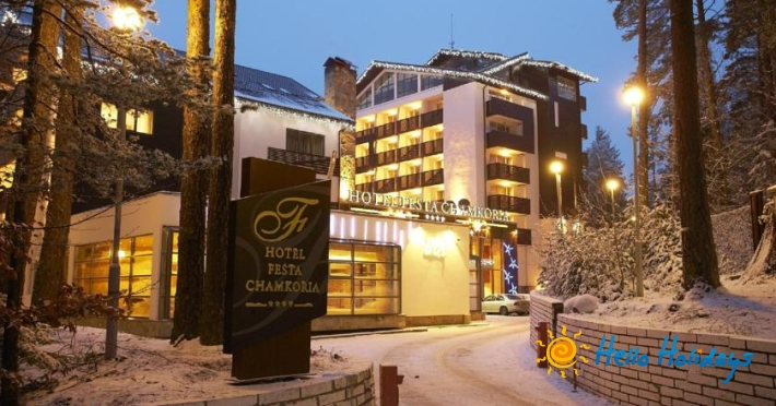 Elegantul Hotel Festa Chamkoria este situat în mijlocul pădurii de pin, veche de secole, la 1200 de metri de staţia de telecabină din celebra staţiune de schi Borovets.