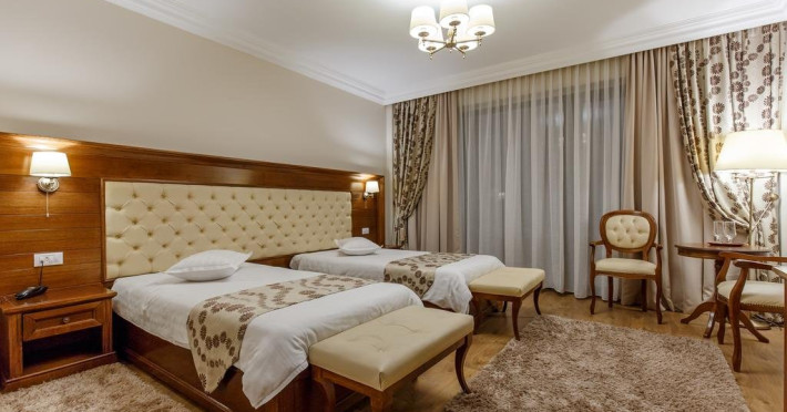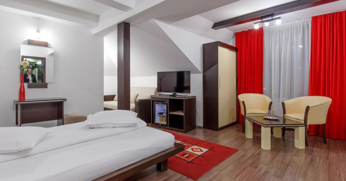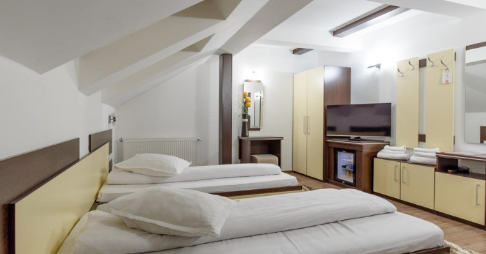 - 9 camere duble ( dotate cu pat matrimonial si canapea extensibila )