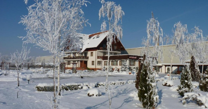 Piscina este amplasata in curtea interioara, intr-o frumoasa zona verde cu o gradina de trandafiri.