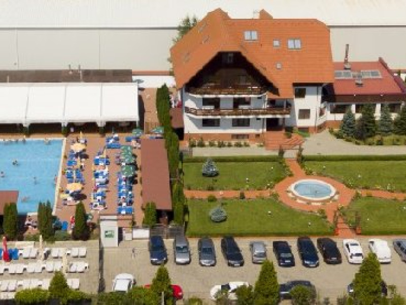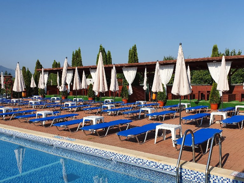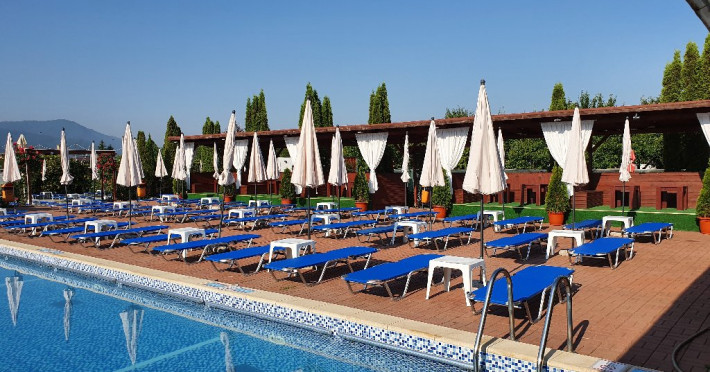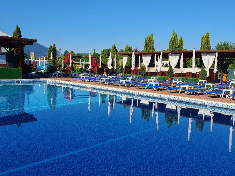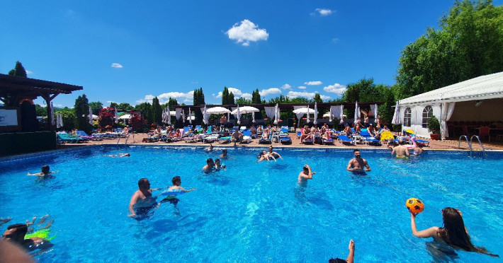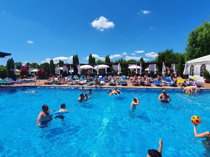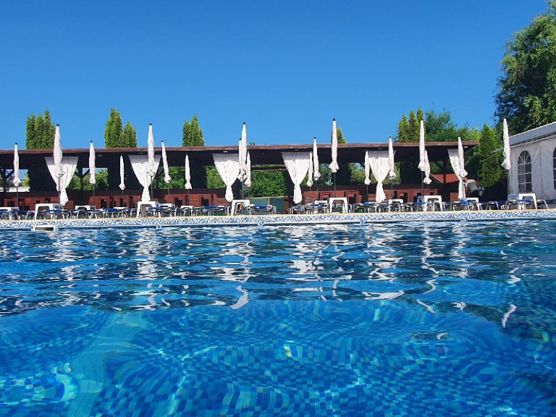 Piscina este amplasata in aer liber si este deschisa in sezonul cald. Are dimensiunile de 10mx20m, cu o adancime medie de 1.40m. Apa este filtrata, incalzita la 24-28*C. Turistii cazati au acces gratuit la piscina si sezlong.