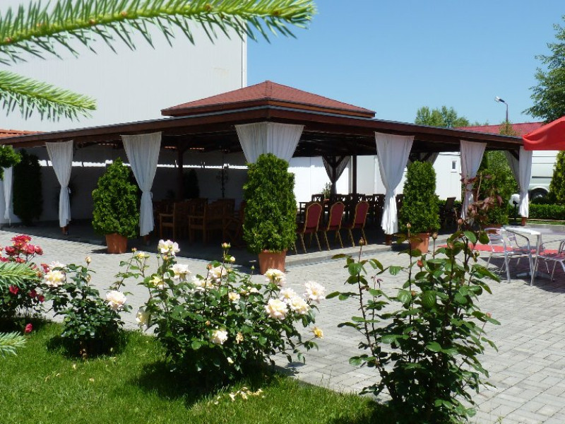 Hotel Garden Club are in componenta hotel, restaurant, terasa restaurant, piscina cu plaja amenajata, terasa piscina, cort de evenimente.