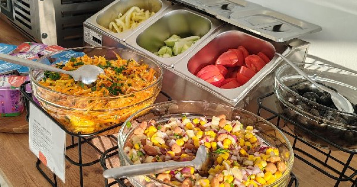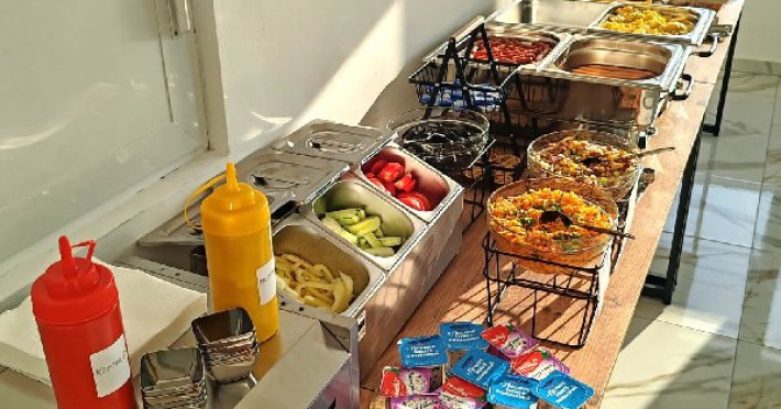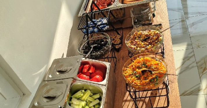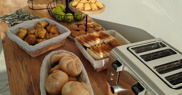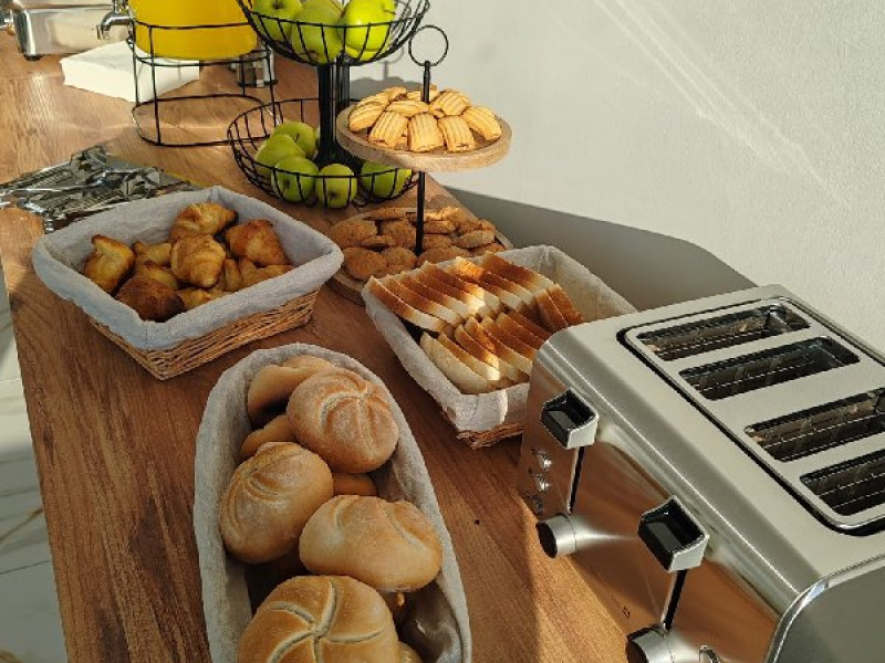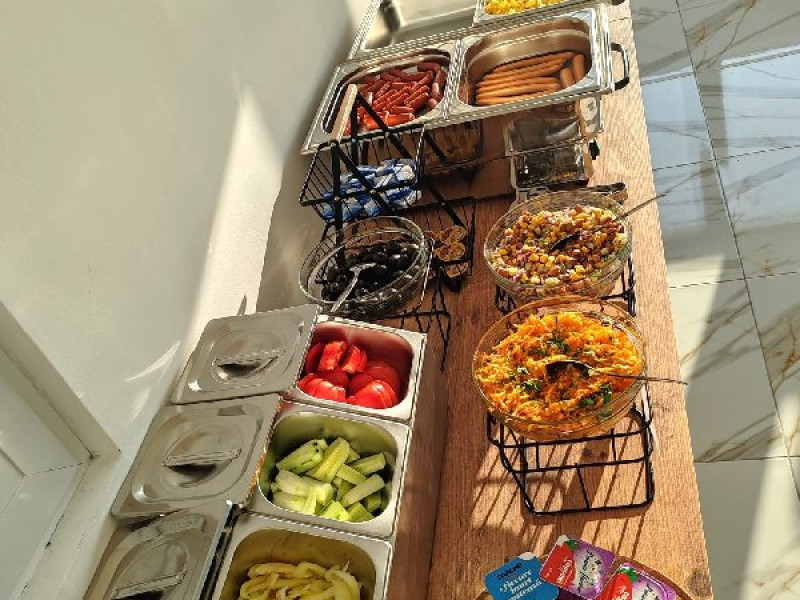 Micul dejun se asigura in sistem bufet suedez, in salonul de mic dejun situat la etajul 1 (nivel cu receptia).