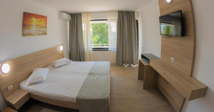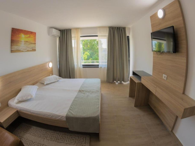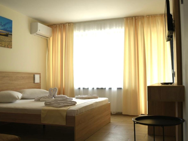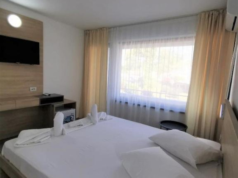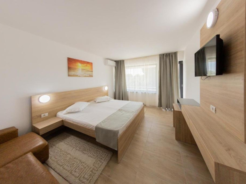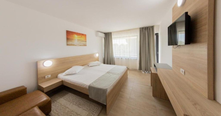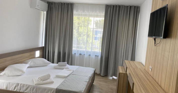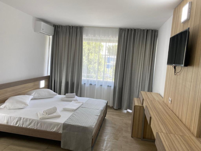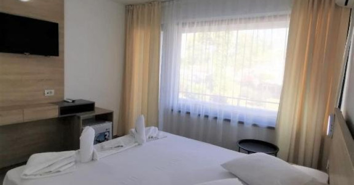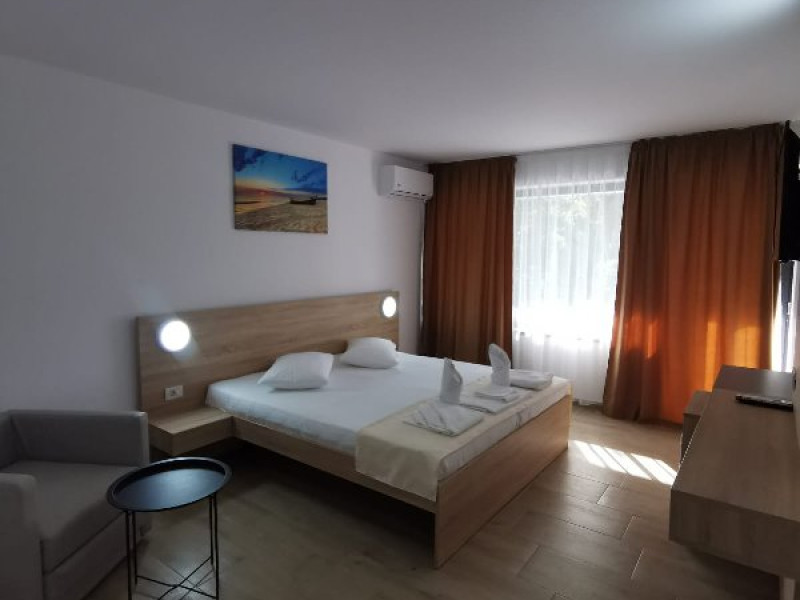 Dotari camere: TV LED, aer conditionat, minibar (racitor), baie cu cadita si dus, balcon cu masa si scaune- la camerele de la etaj, mobilier nou, uscator de par la cerere.