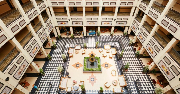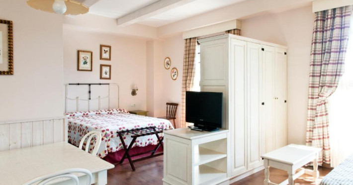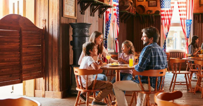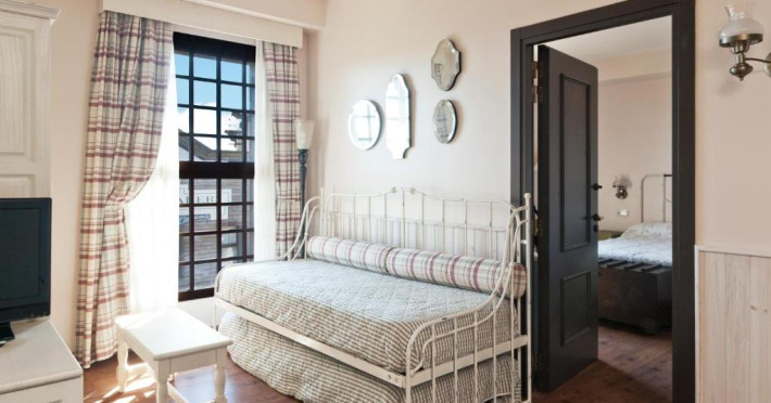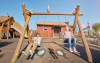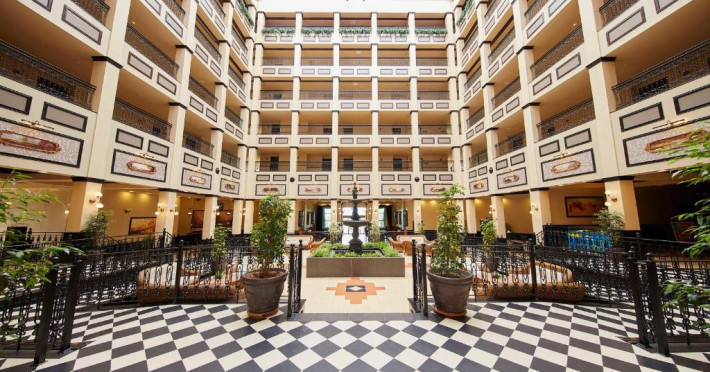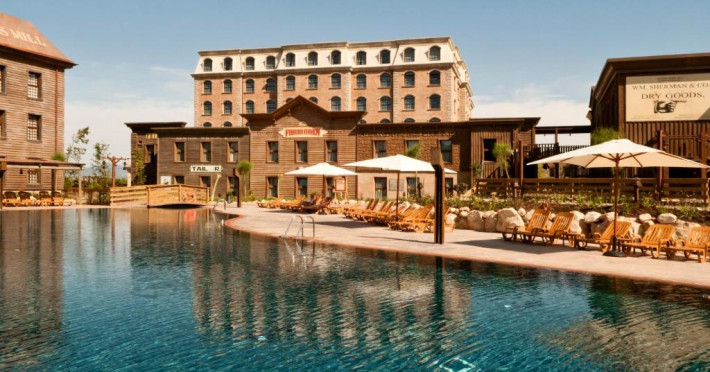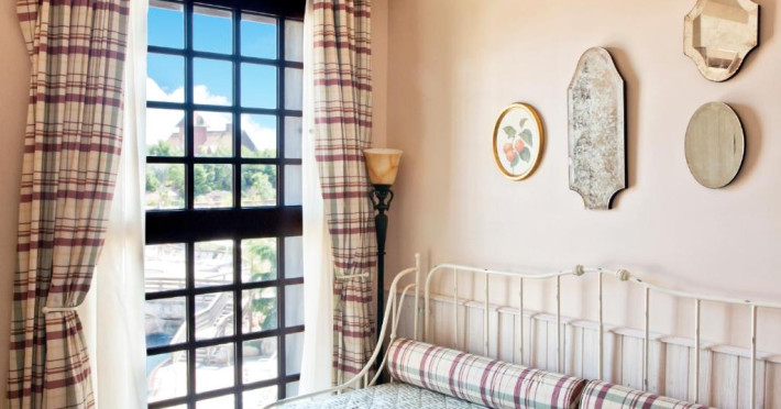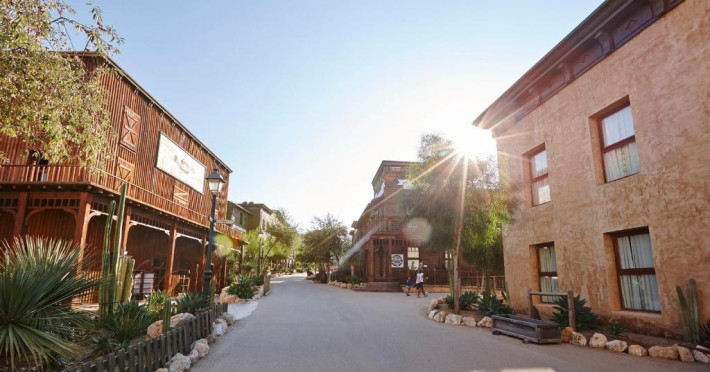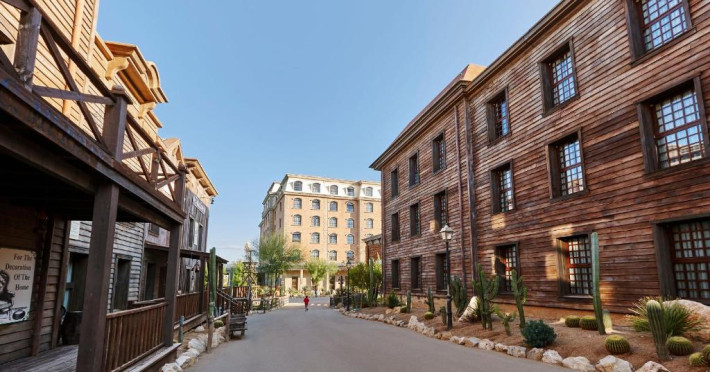 Paturile sunt acoperite cu pilote colorate in mozaic și există mobilier in stil antic, precum și TV prin satelit. Camerele sunt amplasate in diferite părți tematice ale hotelului, inclusiv un conac victorian, Primărie și o stradă principală tipică din Vestul Sălbatic.