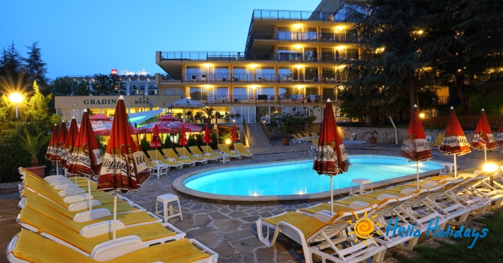 Hotel Gradina este situat în mijlocul unui peisaj înverzit, la numai câțiva metri de plaja staţiunii Nisipurile de Aur. Oferă camere cu balcon și Wi-Fi gratuit în zonele publice.