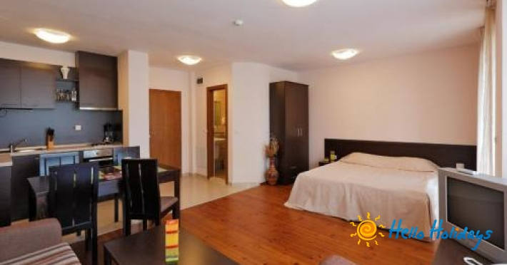 8 cladiri de 2 si 3 etaje, cu 95 camere, 60 studiouri si 15 apartamente, 3 piscine, 2 piscine pt copii, restaurant, taverna, snack bar la piscina, bar, minimarket, tenis de masa, biliard, loc de joaca pt copii, Internet (contra cost), lounge TV langa bar, centru welness & SPA "Aphrodite", inchirieri biciclete.