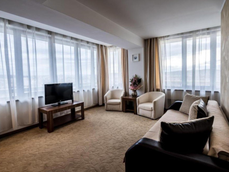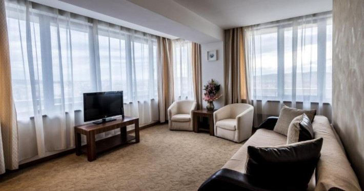 Beneficiind de o locatie centrala in Targu-Mures, in apropiere de primarie si Palatul Culturii, Hotelul Grand ofera camere moderne, decorate cu picturi realizate de artisti locali si prevazute cu vedere intinsa la oras.Camerele de la Hotelul Grand au internet Wi-Fi gratuit, aer conditionat, TV prin cablu si podea cu mocheta. Camerele sunt prevazute cu baie privata cu o cada sau dus.