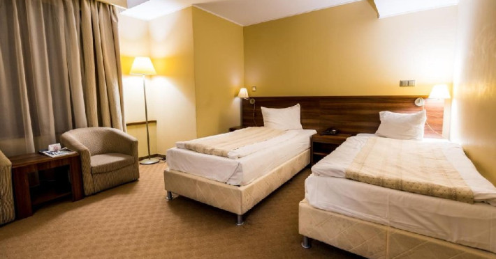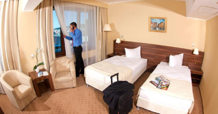 Hotelul Grand ofera camere moderne, decorate cu picturi realizate de artisti locali si prevazute cu vedere intinsa la oras fiind prevazute cu baie privata cu o cada sau dus.