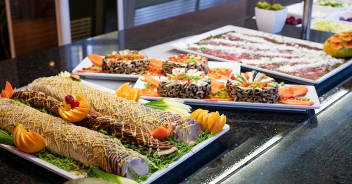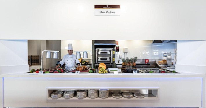 Restaurantul tip bufet El Jabillo servește un mic dejun european și american și preparate din bucătăria mediteraneană pentru pranz și cină. Băuturi și gustări reci sunt disponibile la barul de langă piscină, La Estrella. De asemenea, oaspeții pot savura o băutură la barul Los Alisios din hol.