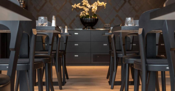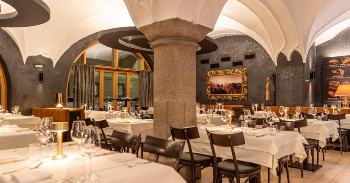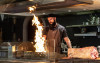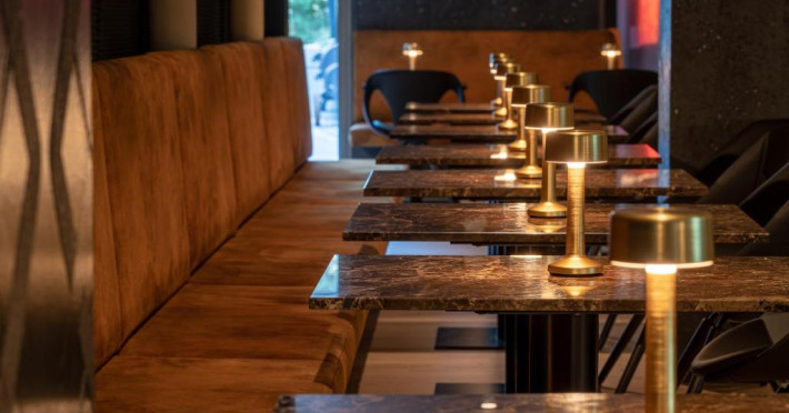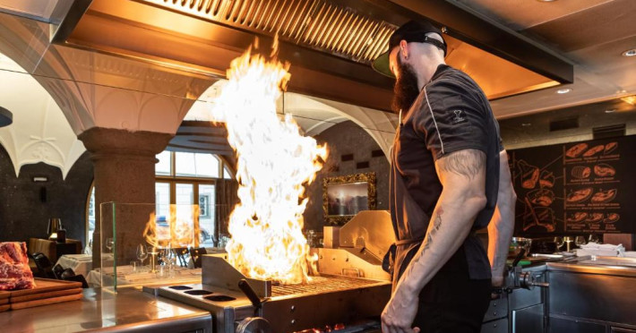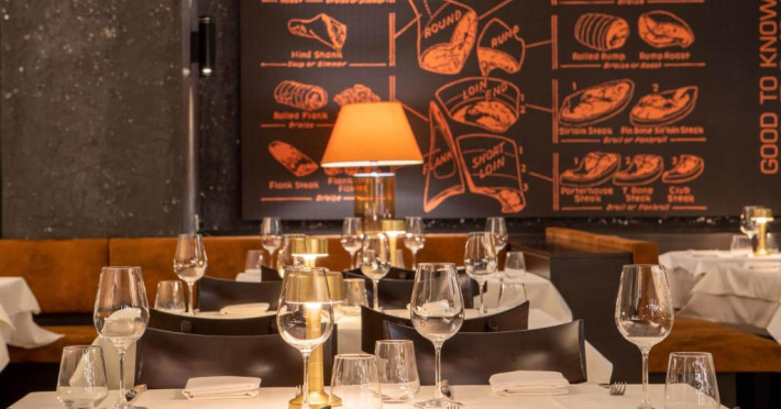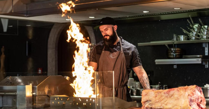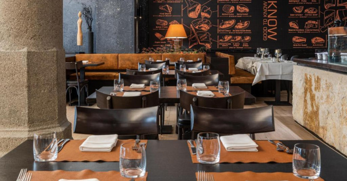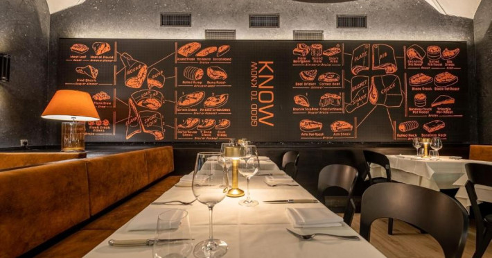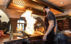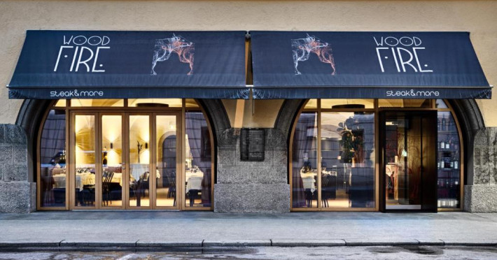Restaurantul Woodfire servește specialități pe bază de fripturi, inclusiv carne de vită uscată.