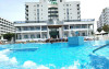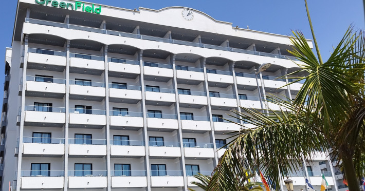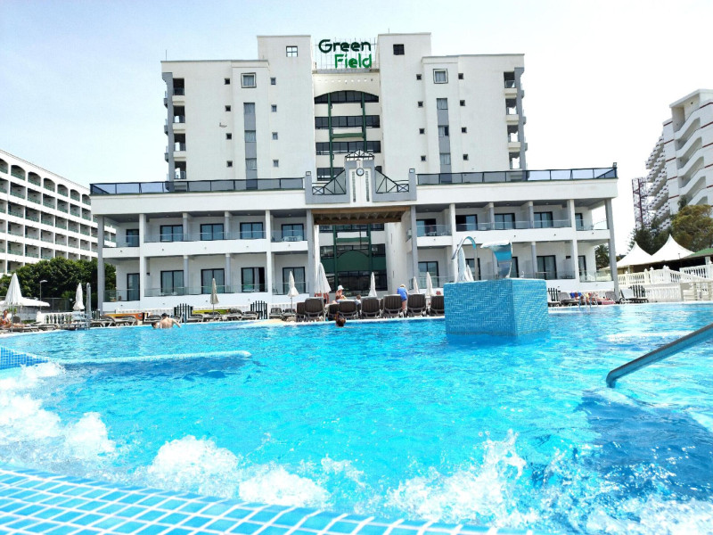 About 500 m from a beach lies the accommodation Hotel Green Field. The city centre is around 1 km away. A supermarket is just a few metres away from the hotel. The hotel is equipped with a 24h reception, Wi-Fi, 2 lifts, a shop, a jacuzzi as well as parking spaces. In the outdoor area of the property you will find a garden as well as a heated pool, where you can rent pool towels for a fee and sun loungers and sun umbrellas are available for free. There is also a children's pool. Furthermore, outside you can find a sun terrace. For very young guests, kid`s chairs can be provided. There is also a laundry service available at an additional cost to customers. If necessary, you can contact the medical centre (for a fee). The energy supply is 220 Volts. For conventions and other business meetings, the hotel offers a conference area. Catering Breakfast is offered from the buffet. Lunch and dinner are also served from the buffet. Your physical well-being is catered for by the cafeteria. Distances- Discotheque: approximately at 550 m