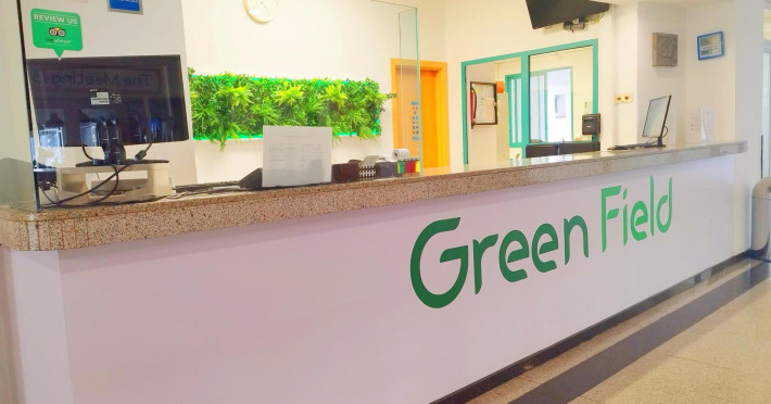 About 500 m from a beach lies the accommodation Hotel Green Field. The city centre is around 1 km away. A supermarket is just a few metres away from the hotel. The hotel is equipped with a 24h reception, Wi-Fi, 2 lifts, a shop, a jacuzzi as well as parking spaces. In the outdoor area of the property you will find a garden as well as a heated pool, where you can rent pool towels for a fee and sun loungers and sun umbrellas are available for free. There is also a children's pool. Furthermore, outside you can find a sun terrace. For very young guests, kid`s chairs can be provided. There is also a laundry service available at an additional cost to customers. If necessary, you can contact the medical centre (for a fee). The energy supply is 220 Volts. For conventions and other business meetings, the hotel offers a conference area. Catering Breakfast is offered from the buffet. Lunch and dinner are also served from the buffet. Your physical well-being is catered for by the cafeteria. Distances