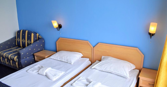 Fiecare cameră este dotată cu aer condiționat, TV cu canale prin satelit, frigider și o baie privată cu duș.
