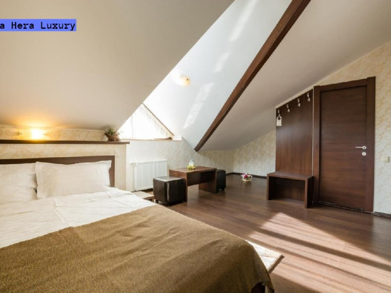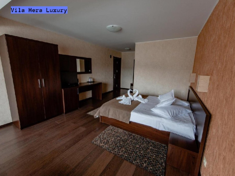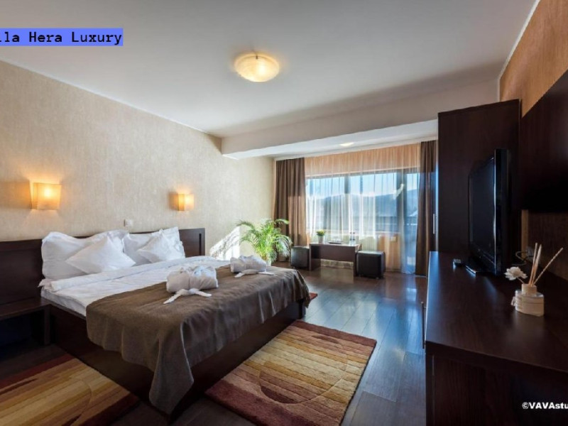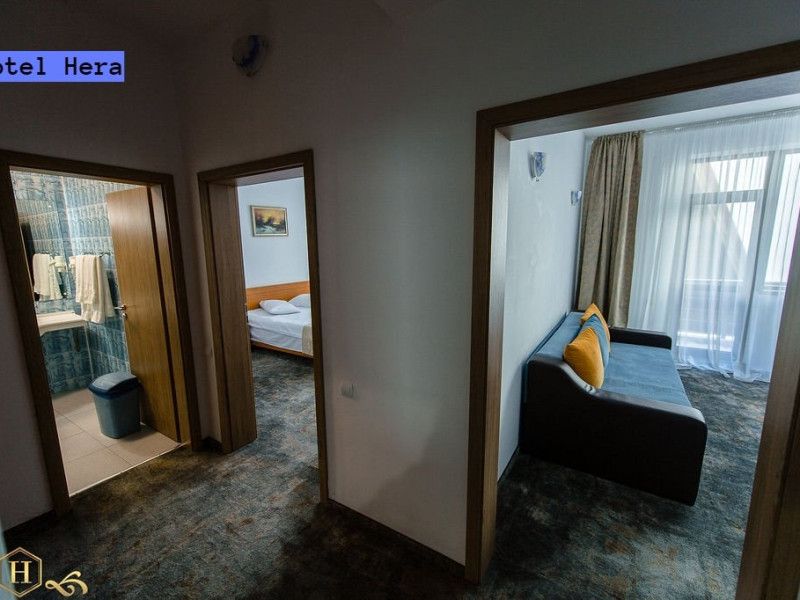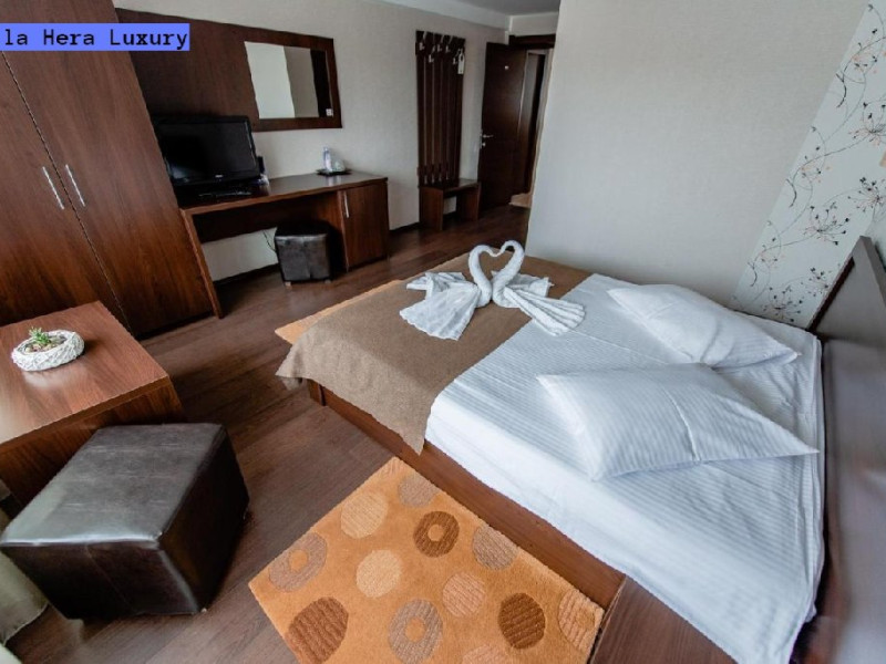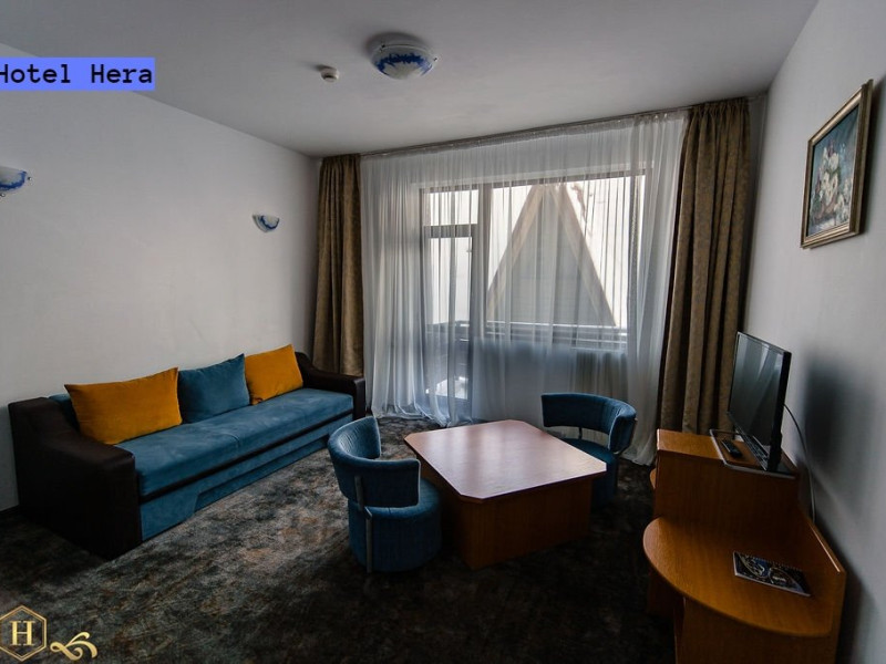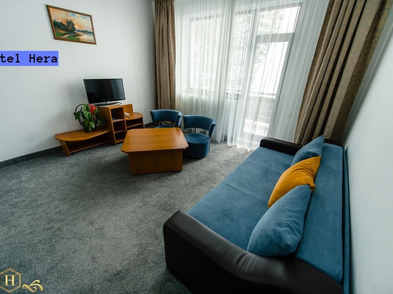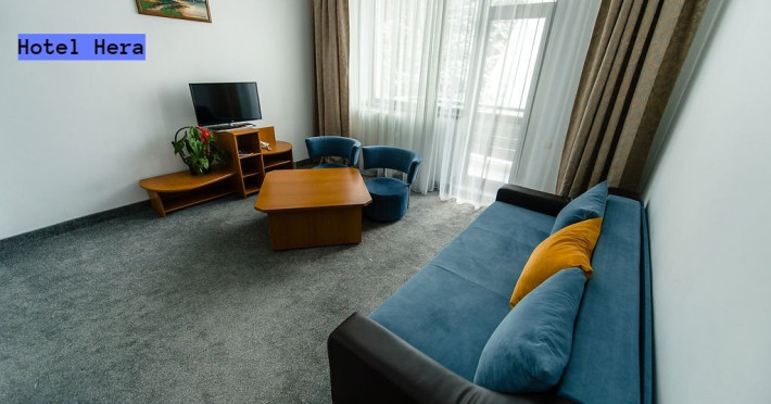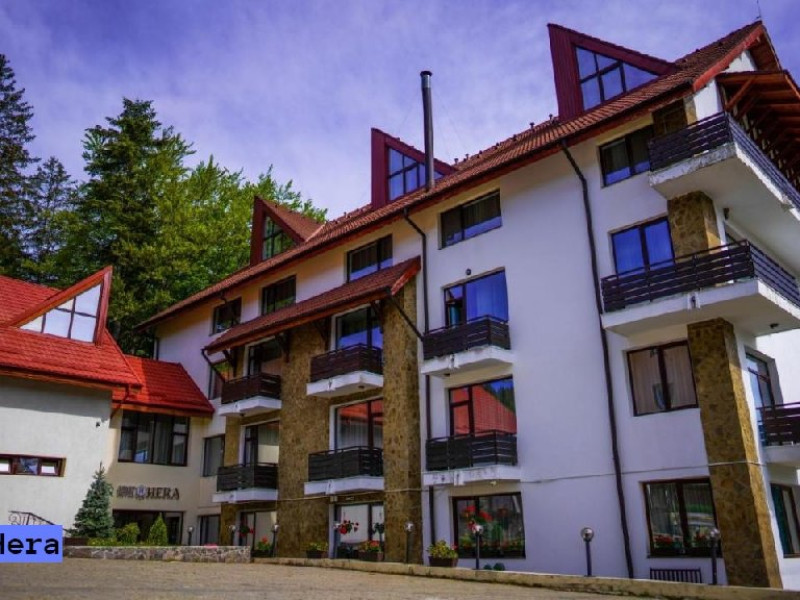 Hotel Hera este acel acasa departe de casa in care te regasesti, zambesti si te relaxezi! Structura inedita de cazare include 19 apartamente si 4 garsoniere cu suprafete foarte generoase, dotari complete si vedere spectaculoasa asupra imprejurimilor.
