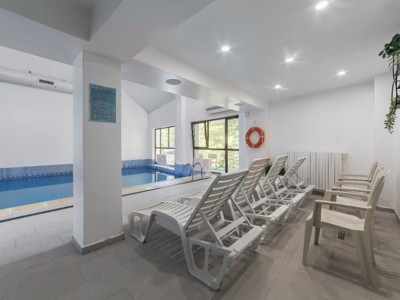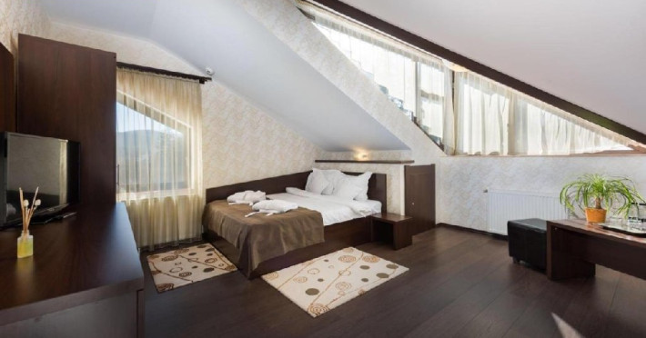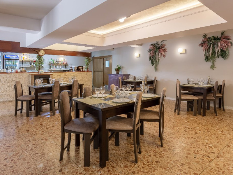 Hotelul cuprinde un restaurant cu specific romanesc si international, piscina interioara, sauna, sala de conferinte si parcare proprie.