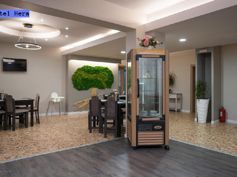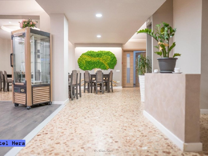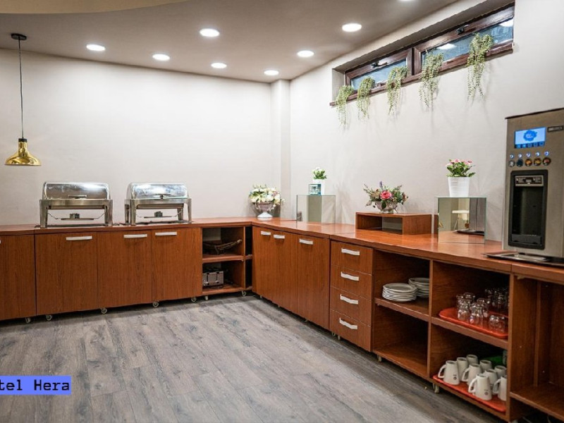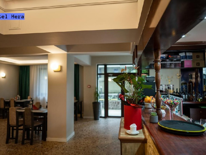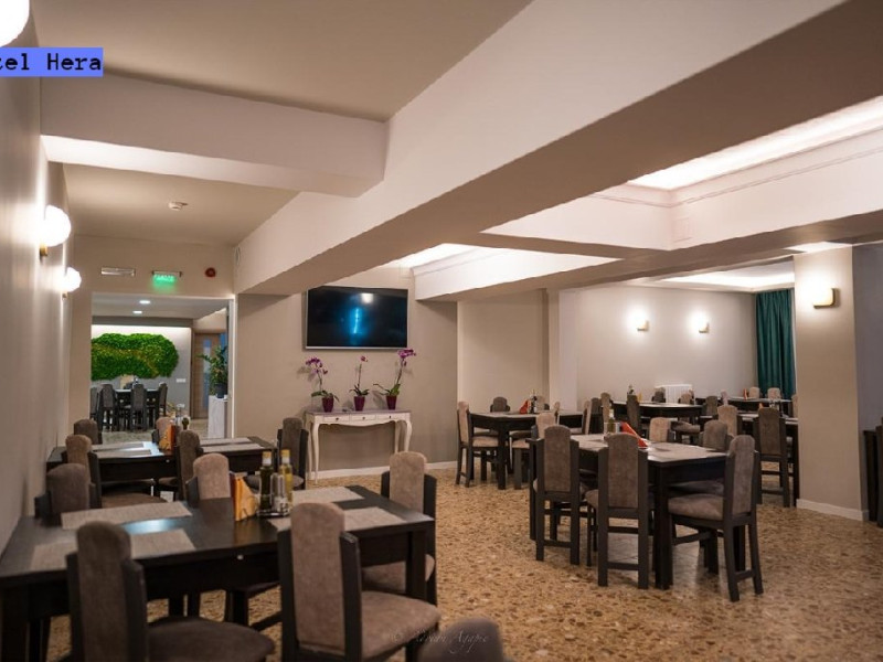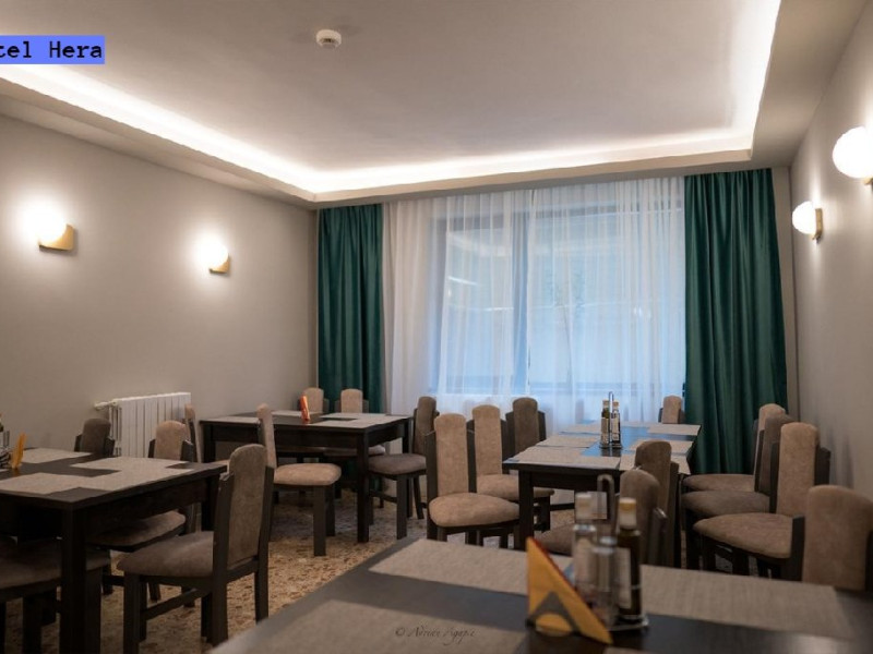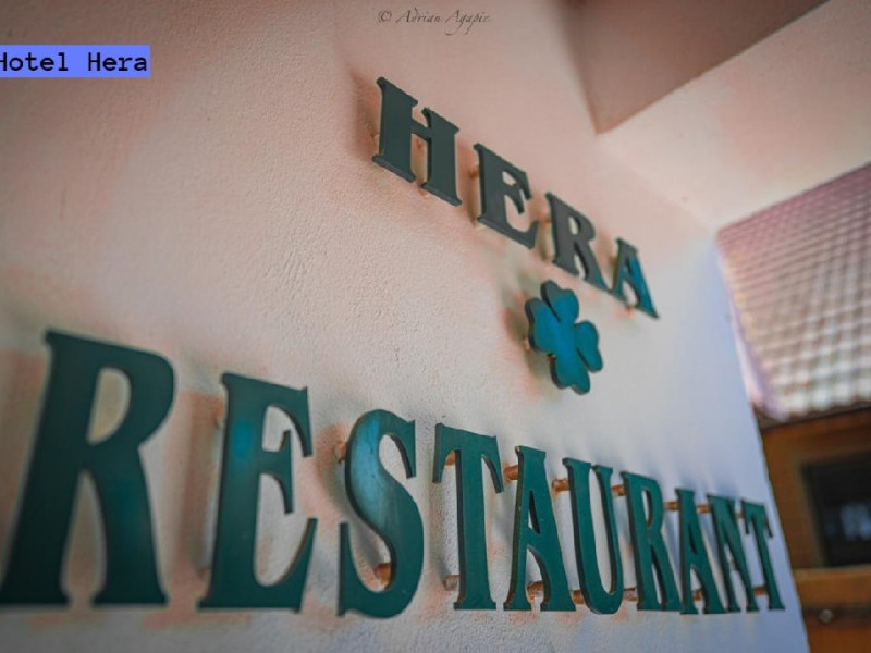 Mesele se servesc in restaurantul propriu al Hotelului Hera cu o capacitate de 90 locuri.