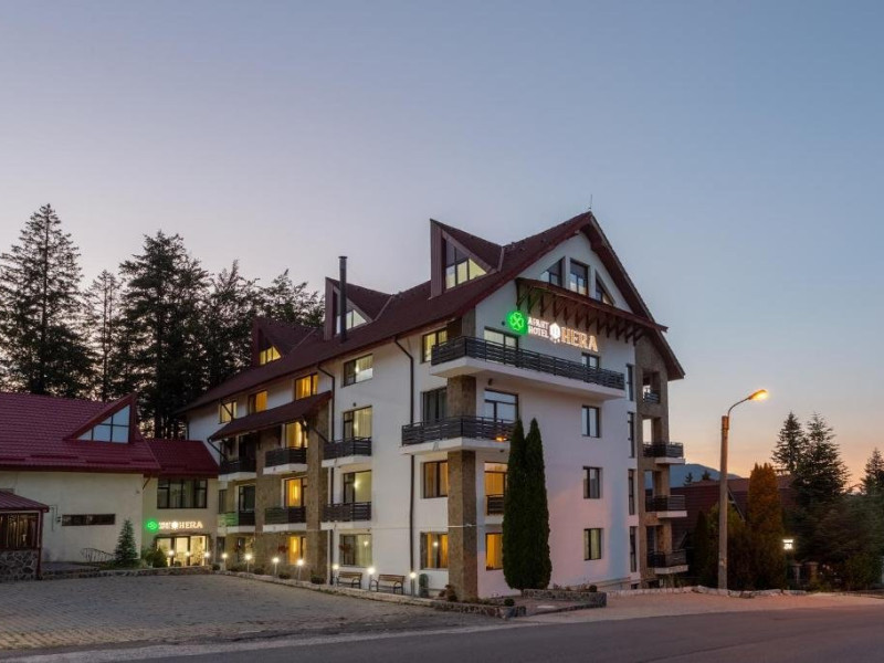 Cazare confortabila: Hotel Hera din Predeal ofera camere familiale cu bai private, vedere la munte sau la gradina si dotari moderne precum WiFi gratuit, TV si izolare fonica. Fiecare camera include uscator de par, articole de toaleta gratuite si dulap.Wellness si relaxare: Oaspetii se pot relaxa la centrul spa si wellness, sauna, terasa la soare si piscina interioara. Facilitatile suplimentare includ o piscina mica, o zona de relaxare in aer liber si parcare privata gratuita la proprietate.