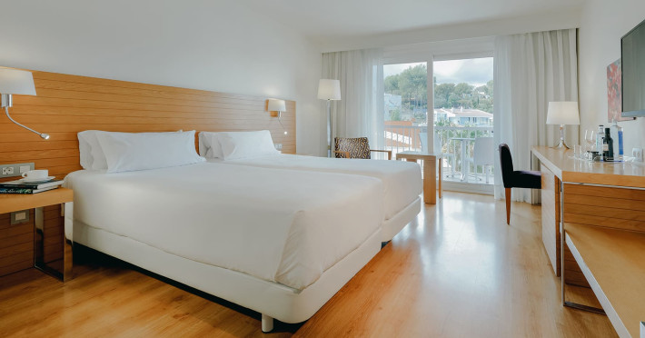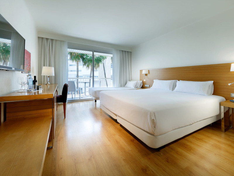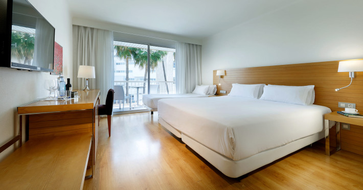 On the beach are beach towels for a fee available. The air-conditioned, GPS-verified hotel HESPERIA CIUTAT DE MALLORCA has a 24h reception (check-in is possible around the clock), a lobby, Wi-Fi, internet access, 2 lifts, parking spaces as well as a TV lounge with satellite TV. In the outdoor area you will find a garden as well as a pool that is open seasonally, where you can rent pool towels for a fee and sun loungers and sun umbrellas are available for free. For children there is also an integrated children's pool. Furthermore, outside you can find a terrace. You can store your valuables in the safe, and your luggage in the hotel`s storage room. In addition, the hotel HESPERIA CIUTAT DE MALLORCA is video-monitored 24h a day. For very young guests, kid`s chairs can be provided. There is also a laundry service available at an additional cost to customers as well as an ironing service. Ironing equipment can also be rented at the hotel for a fee. For your comfort there is a concierge service. The energy supply is 220 Volts. For conventions and other business meetings, the hotel offers a conference area with a total of 60 seats, tables, scanner, overhead projector as well as internet access. If you want to explore the holiday region, you can use the car and motorbike rental service close to the hotel. At the reception, tickets are offered for excursions in the area. Pets like cats and dogs up to 20 kg are allowed in the hotel (on request). American Express, Euro/Master Card and Visa are accepted as means of payment. Catering As catering services the hotel offers self-catering. Breakfast is offered continental or from the buffet. For the meals, there are a bar as well as the pool bar. Additional information The hotel has a total of 60 rooms. The hotel staff speak English, German and Spanish.On the beach are beach towels for a fee available. The air-conditioned, GPS-verified hotel HESPERIA CIUTAT DE MALLORCA has a 24h reception (check-in is possible around the clock), a lobby, Wi-Fi, internet access, 2 lifts, parking spaces as well as a TV lounge with satellite TV. In the outdoor area you will find a garden as well as a pool that is open seasonally, where you can rent pool towels for a fee and sun loungers and sun umbrellas are available for free. For children there is also an integrated children's pool. Furthermore, outside you can find a terrace. You can store your valuables in the safe, and your luggage in the hotel`s storage room. In addition, the hotel HESPERIA CIUTAT DE MALLORCA is video-monitored 24h a day. For very young guests, kid`s chairs can be provided. There is also a laundry service available at an additional cost to customers as well as an ironing service. Ironing equipment can also be rented at the hotel for a fee. For your comfort there is a concierge service. The energy supply is 220 Volts. For conventions and other business meetings, the hotel offers a conference area with a total of 60 seats, tables, scanner, overhead projector as well as internet access. If you want to explore the holiday region, you can use the car and motorbike rental service close to the hotel. At the reception, tickets are offered for excursions in the area. Pets like cats and dogs up to 20 kg are allowed in the hotel (on request). American Express, Euro/Master Card and Visa are accepted as means of payment. Catering As catering services the hotel offers self-catering. Breakfast is offered continental or from the buffet. For the meals, there are a bar as well as the pool bar. Additional information The hotel has a total of 60 rooms. The hotel staff speak English, German and Spanish.