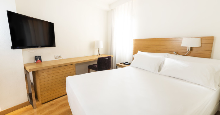 On the beach are beach towels for a fee available. The air-conditioned, GPS-verified hotel HESPERIA CIUTAT DE MALLORCA has a 24h reception (check-in is possible around the clock), a lobby, Wi-Fi, internet access, 2 lifts, parking spaces as well as a TV lounge with satellite TV. In the outdoor area you will find a garden as well as a pool that is open seasonally, where you can rent pool towels for a fee and sun loungers and sun umbrellas are available for free. For children there is also an integrated children's pool. Furthermore, outside you can find a terrace. You can store your valuables in the safe, and your luggage in the hotel`s storage room. In addition, the hotel HESPERIA CIUTAT DE MALLORCA is video-monitored 24h a day. For very young guests, kid`s chairs can be provided. There is also a laundry service available at an additional cost to customers as well as an ironing service. Ironing equipment can also be rented at the hotel for a fee. For your comfort there is a concierge service. The energy supply is 220 Volts. For conventions and other business meetings, the hotel offers a conference area with a total of 60 seats, tables, scanner, overhead projector as well as internet access. If you want to explore the holiday region, you can use the car and motorbike rental service close to the hotel. At the reception, tickets are offered for excursions in the area. Pets like cats and dogs up to 20 kg are allowed in the hotel (on request). American Express, Euro/Master Card and Visa are accepted as means of payment. Catering As catering services the hotel offers self-catering. Breakfast is offered continental or from the buffet. For the meals, there are a bar as well as the pool bar. Additional information The hotel has a total of 60 rooms. The hotel staff speak English, German and Spanish.