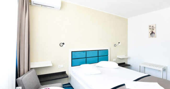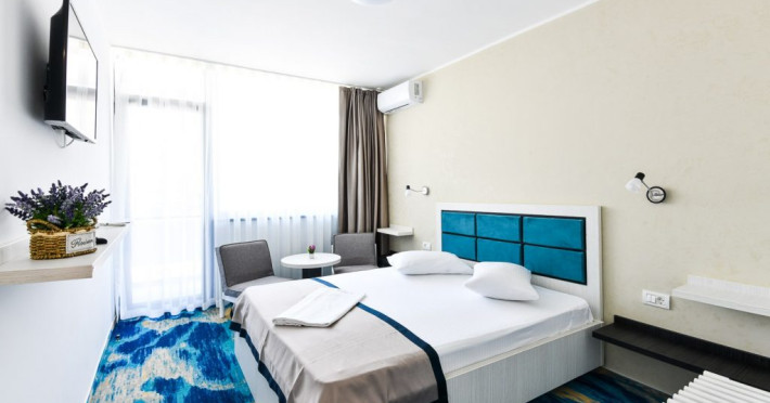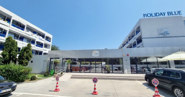 Hotelul Holiday Blue este situat in statiunea Olimp, la aproximativ 195 de metri de plaja, oferind o locatie convenabila pentru turisti. Hotelul a fost complet renovat si modernizat in perioada 2019-2020, asigurand conditii moderne si confortabile de cazare. Hotelul dispune de 226 de camere duble, repartizate in doua corpuri de cladire cu cate 4 etaje fiecare. Camerele sunt dotate cu aer conditionat, televizor LCD, frigider, internet wireless gratuit si baie proprie cu dus. Camerele de la etaj beneficiaza si de balcon, oferind oaspetilor un plus de confort. Printre facilitatile oferite se numara o piscina in aer liber, acces gratuit la internet wireless in zonele publice, bar de zi si parcare proprie gratuita, in limita locurilor disponibile. Serviciile de masa sunt asigurate la restaurant in sistem bufet suedez. Hotelul este potrivit atat pentru cupluri, cat si pentru familii cu copii, oferind facilitati adecvate pentru o vacanta relaxanta la malul marii.Datorita dinamicitatii domeniului disponibilitatea ofertelor se modifica de la un moment la altul. De aceea ofertele sunt valabile in limita locurilor disponibile. Agentia nu este responsabila pentru eventualele neconcordante care pot aparea intre informatiile privind tarifele si alte detalii din site si informatiile primite in agentie. In aceste cazuri vor avea prioritate, intotdeauna, informatiile primite in agentie.