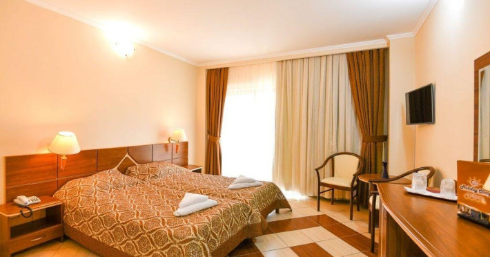 Dotari camere: aer conditionat, TV LCD, minibar, balcon, baie cu dus, internet wireless, telefon.